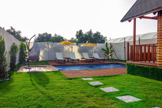 ▪️Bahçede şezlong,şemsiye,salıncak,masa/sandalye bulunur.