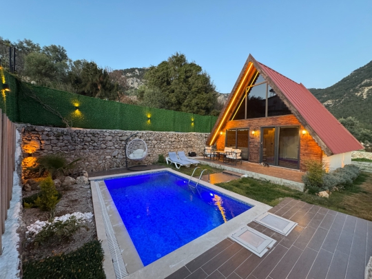 🏡 Tepe Bungalov | Fethiye Faralya Kirme’de Deniz Manzaralı, Doğayla İç İçe 2+1 Dubleks Bungalov