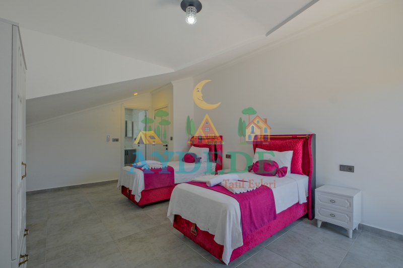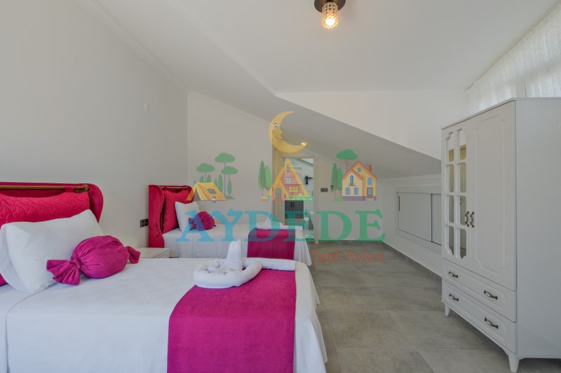 Seydikemer / Gerişburnu mevkiinde konumlanan, yan yana ve birebir aynı özelliklere sahip iki özel villamız; kalabalık aileler ve birlikte tatil yapmak isteyen gruplar için ideal bir konaklama imkânı sunmaktadır. Şehrin karmaşasından uzak, sessiz ve huzurlu atmosferiyle dinlenme odaklı bir tatil arayan misafirler için öne çıkan bir seçenektir.