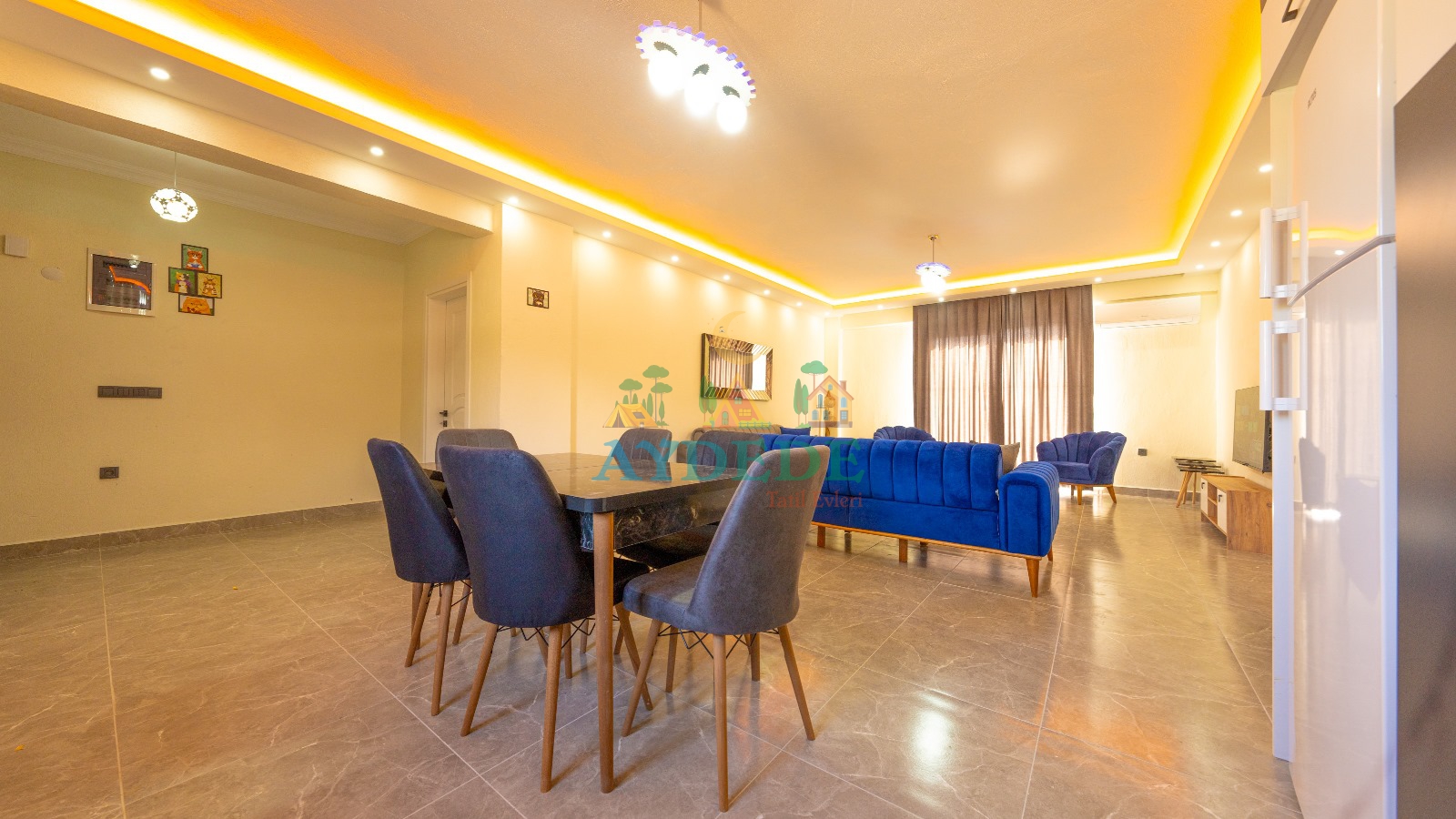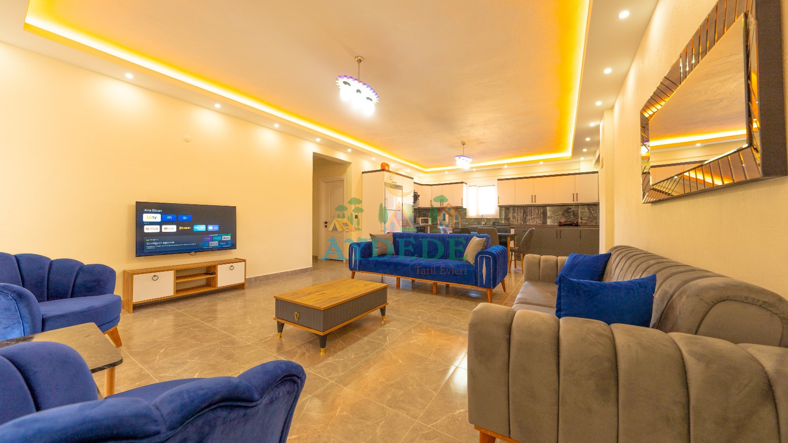 • Klima, TV, modern oturma grubu, yemek masası