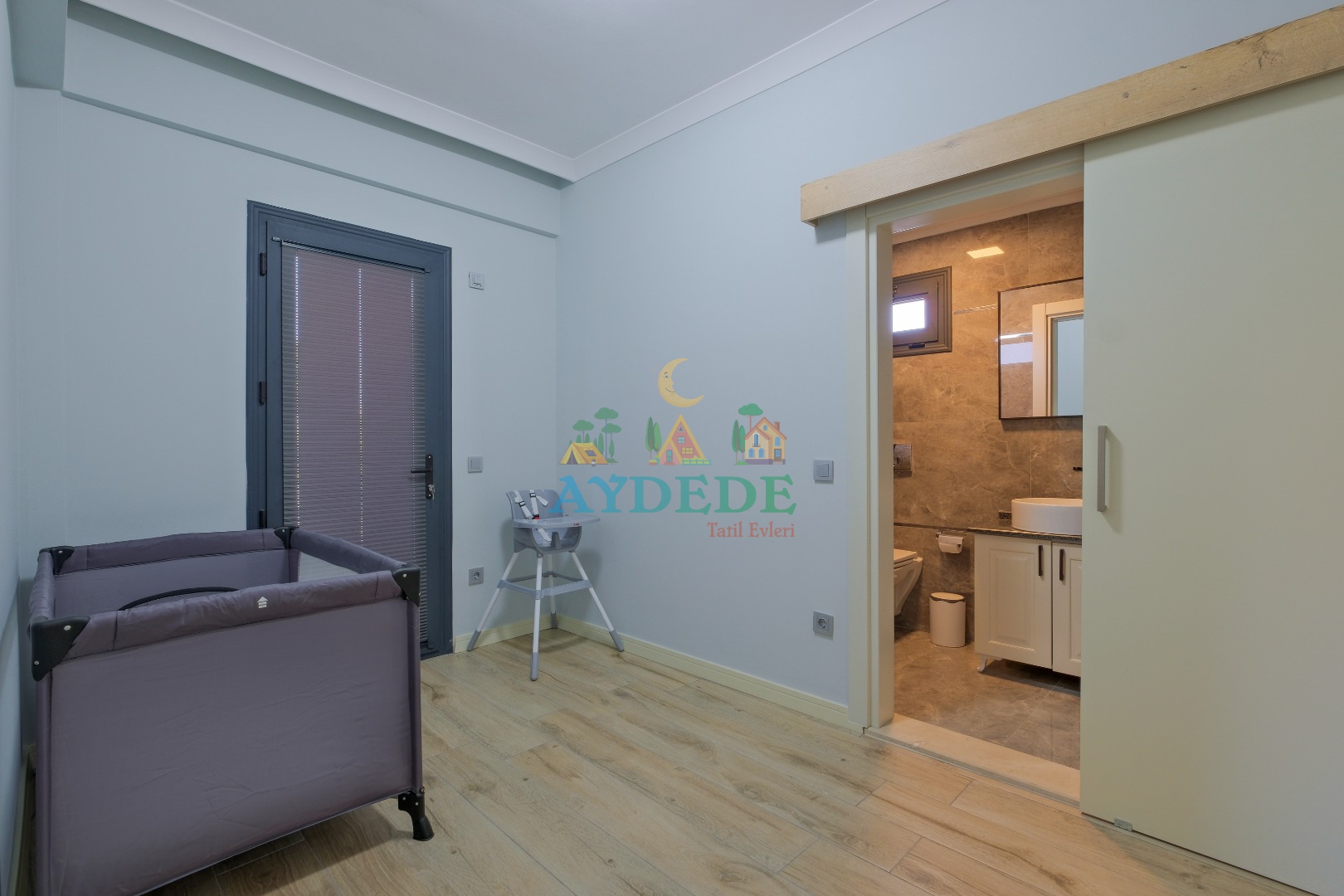 Çift kişilik yatak, klima, bebek yatağı, ebeveyn banyo