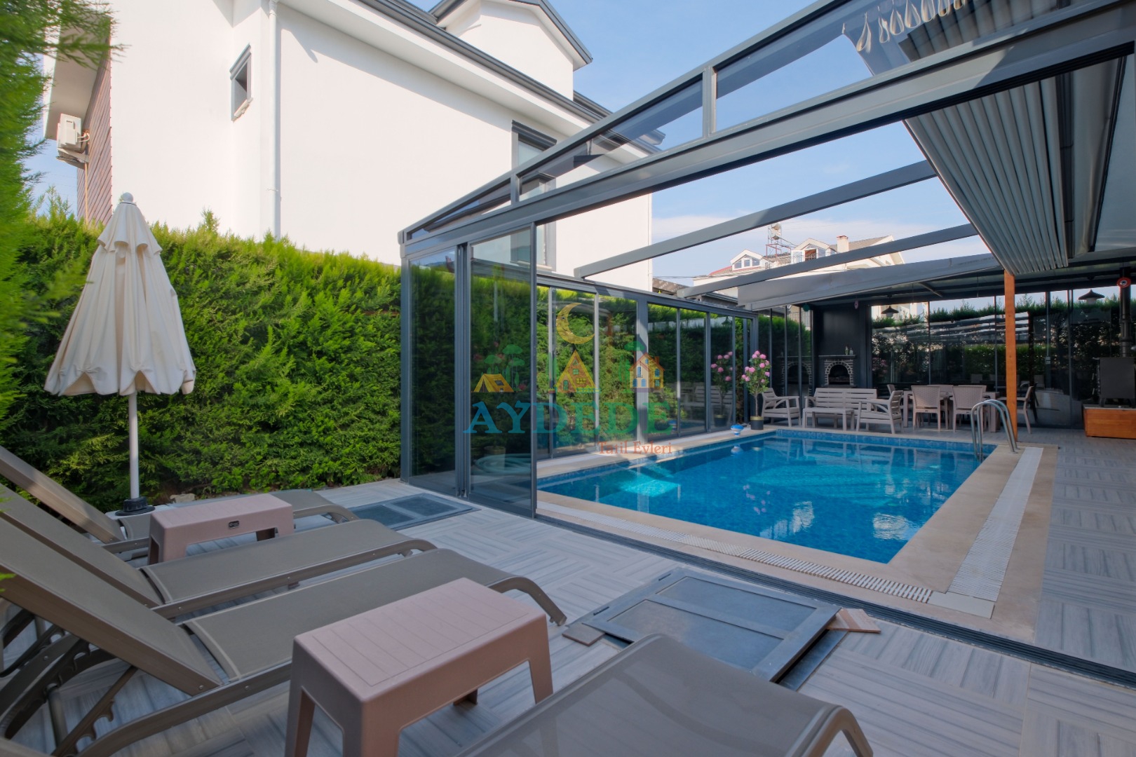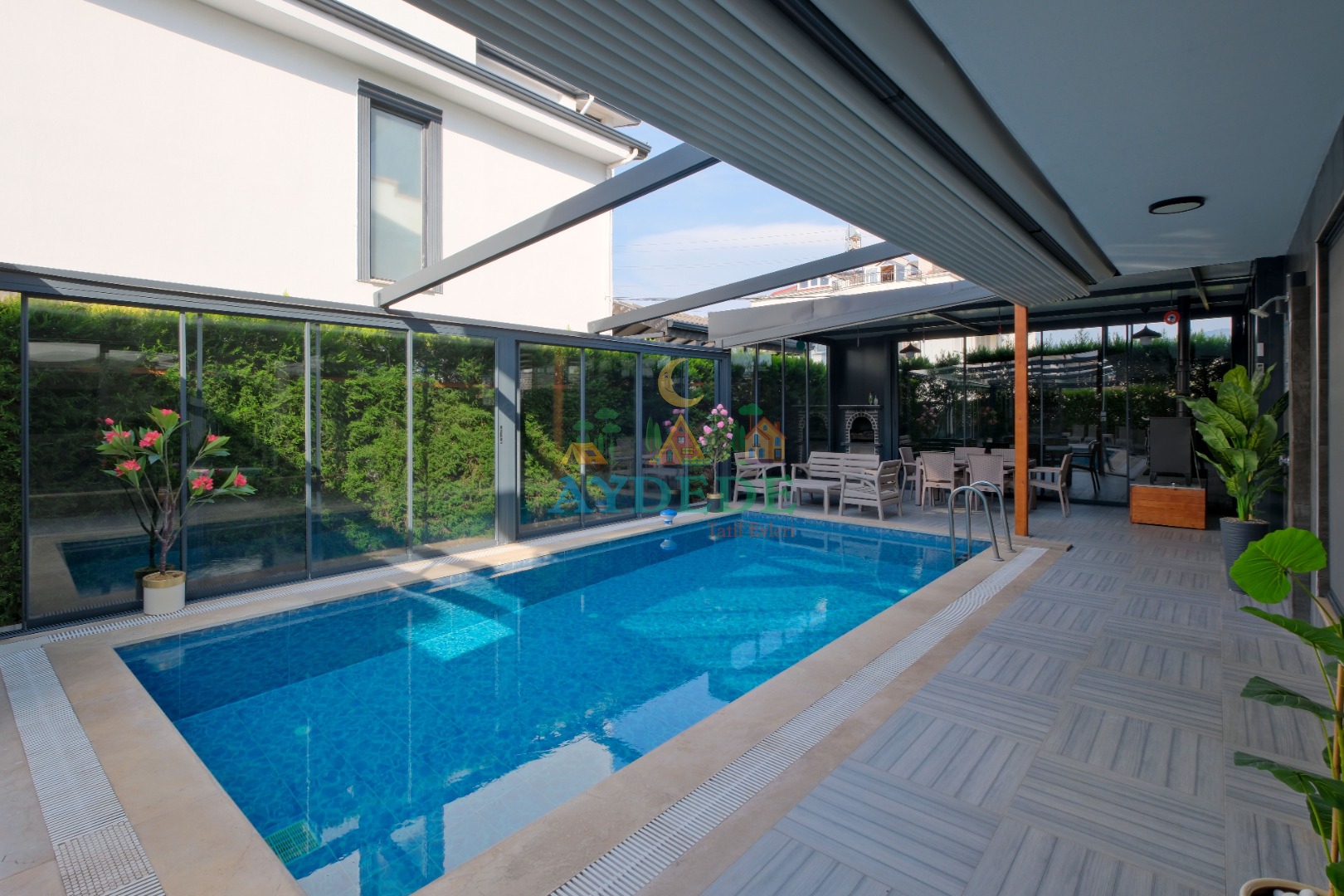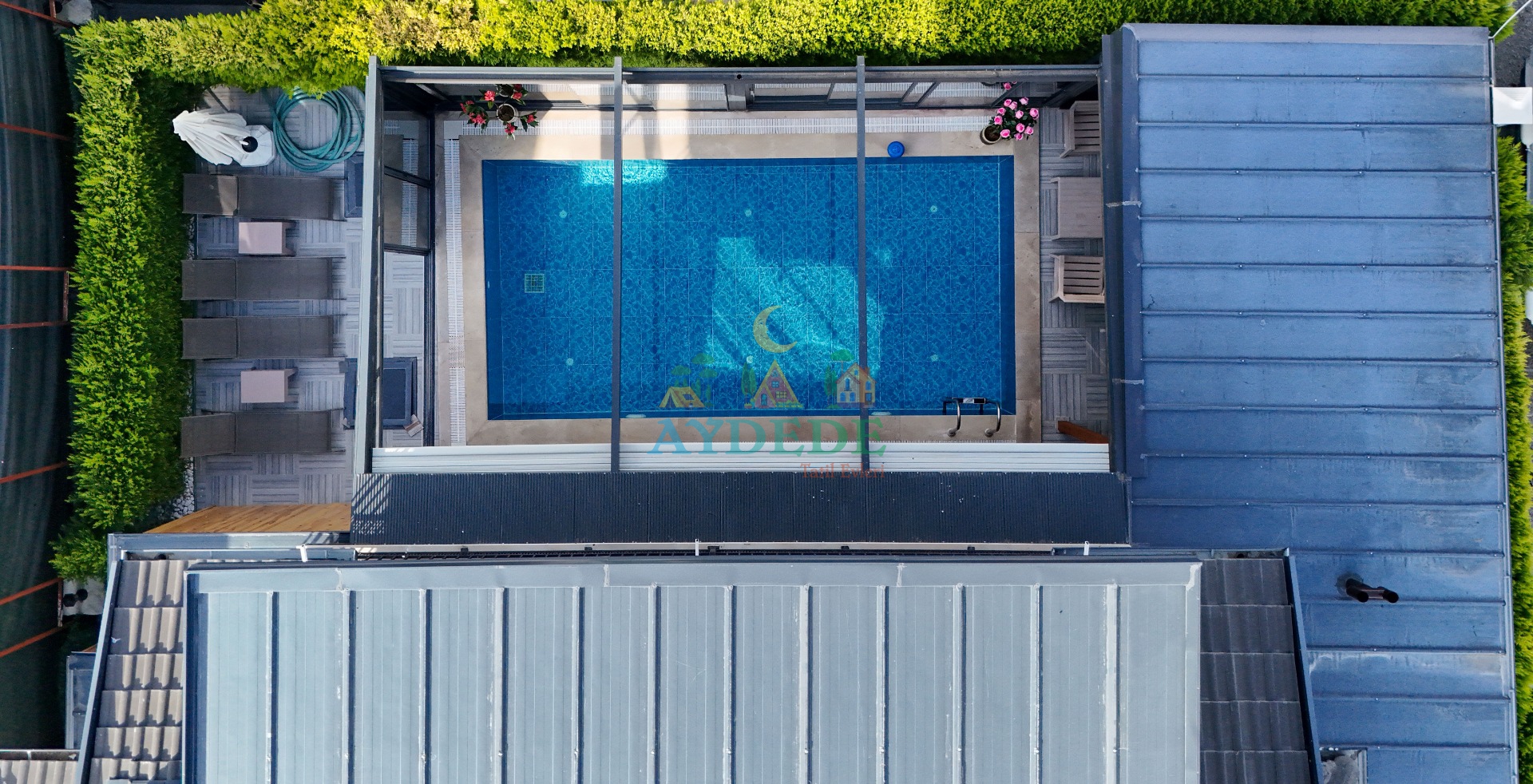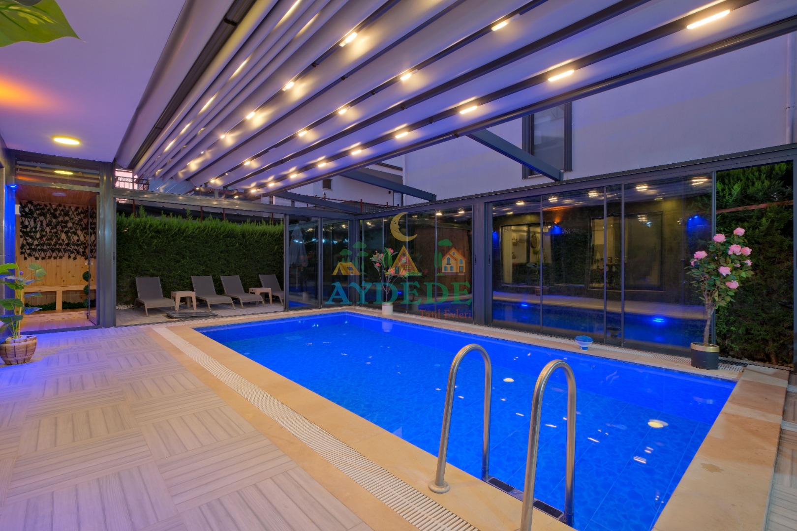 ***Villamız yaz aylarında açık havuzlu, kış aylarında kumanda ile tek tuşla üstü kapatılabilen KAPALI ISITMALI HAVUZLU bir villadır.