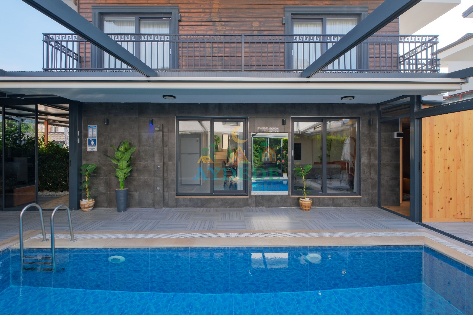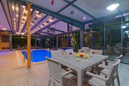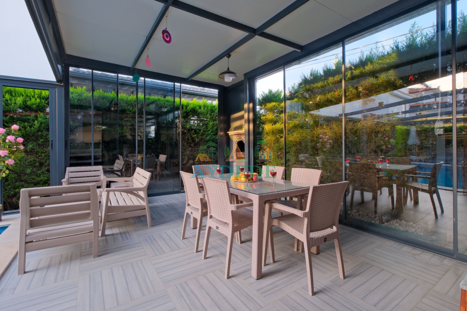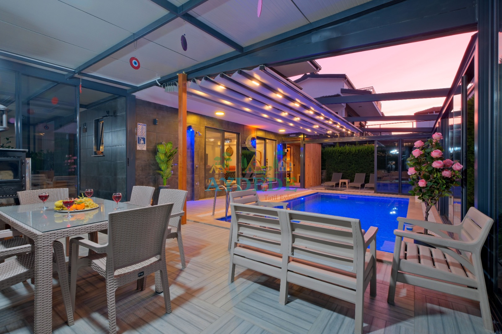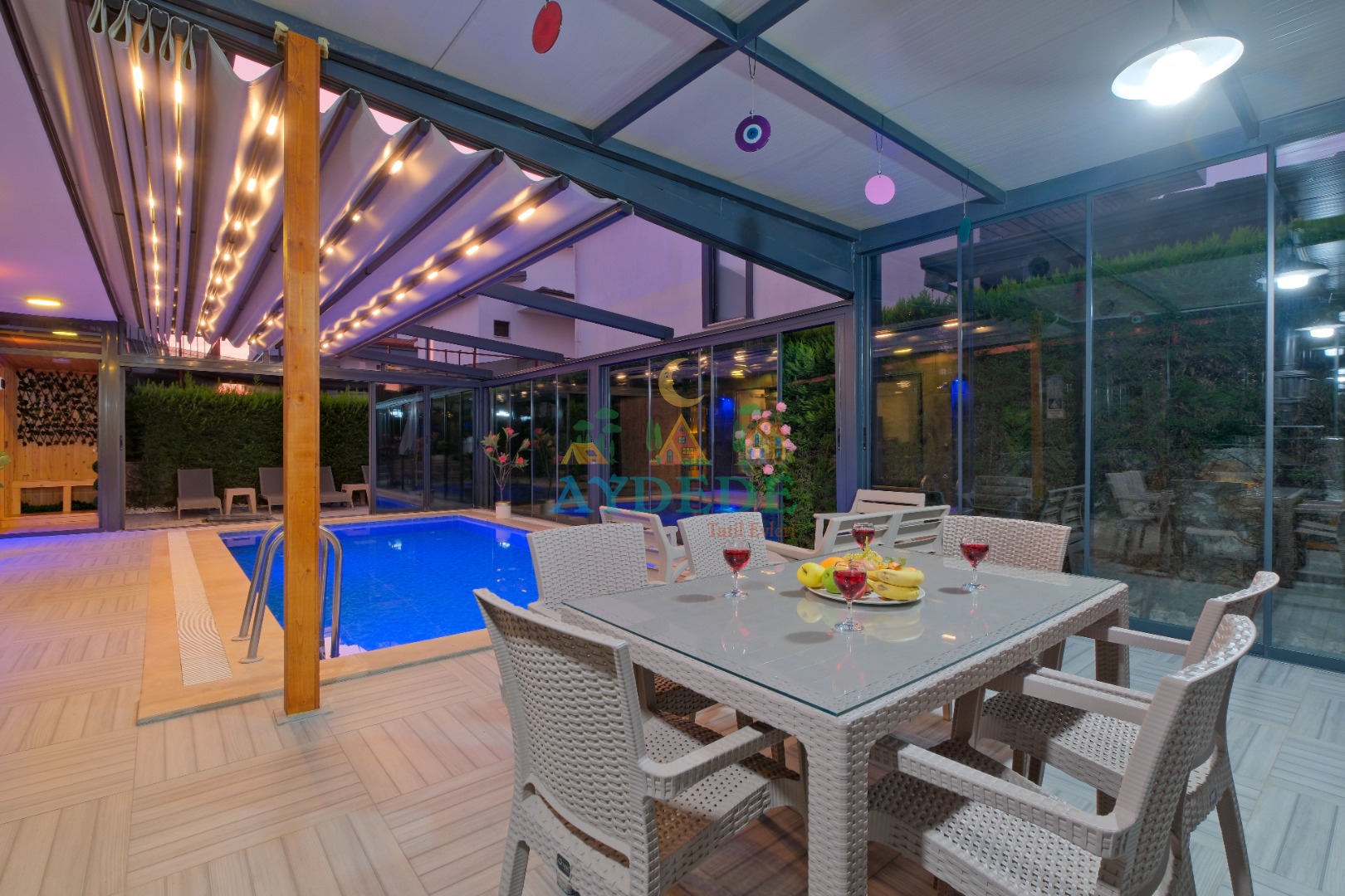 ***Villamız yaz aylarında açık havuzlu, kış aylarında kumanda ile tek tuşla üstü kapatılabilen KAPALI ISITMALI HAVUZLU bir villadır.