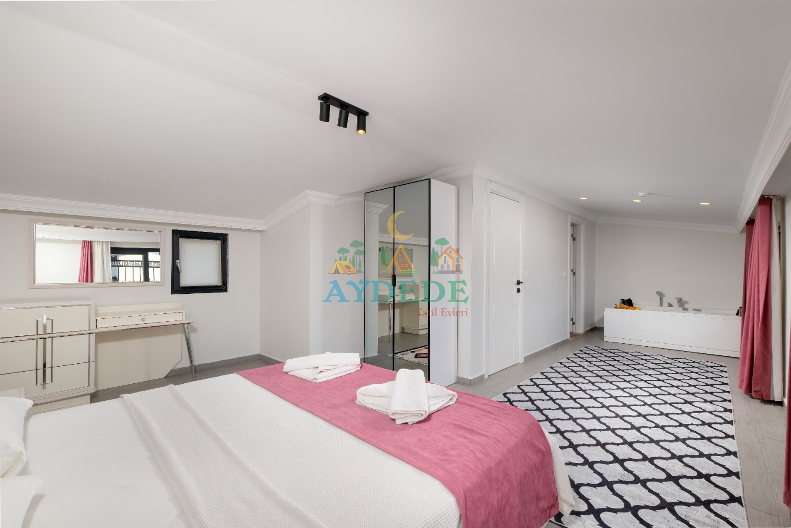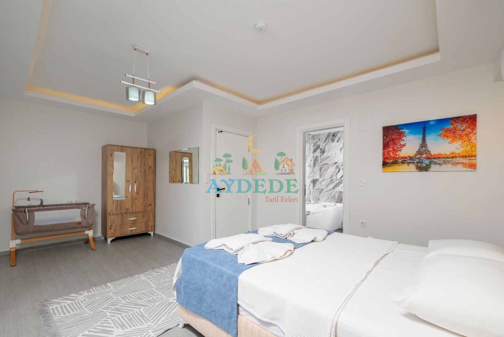 1. Yatak odası: çift kişilik yatak,ebeveyn banyo, klima veJAKUZİ