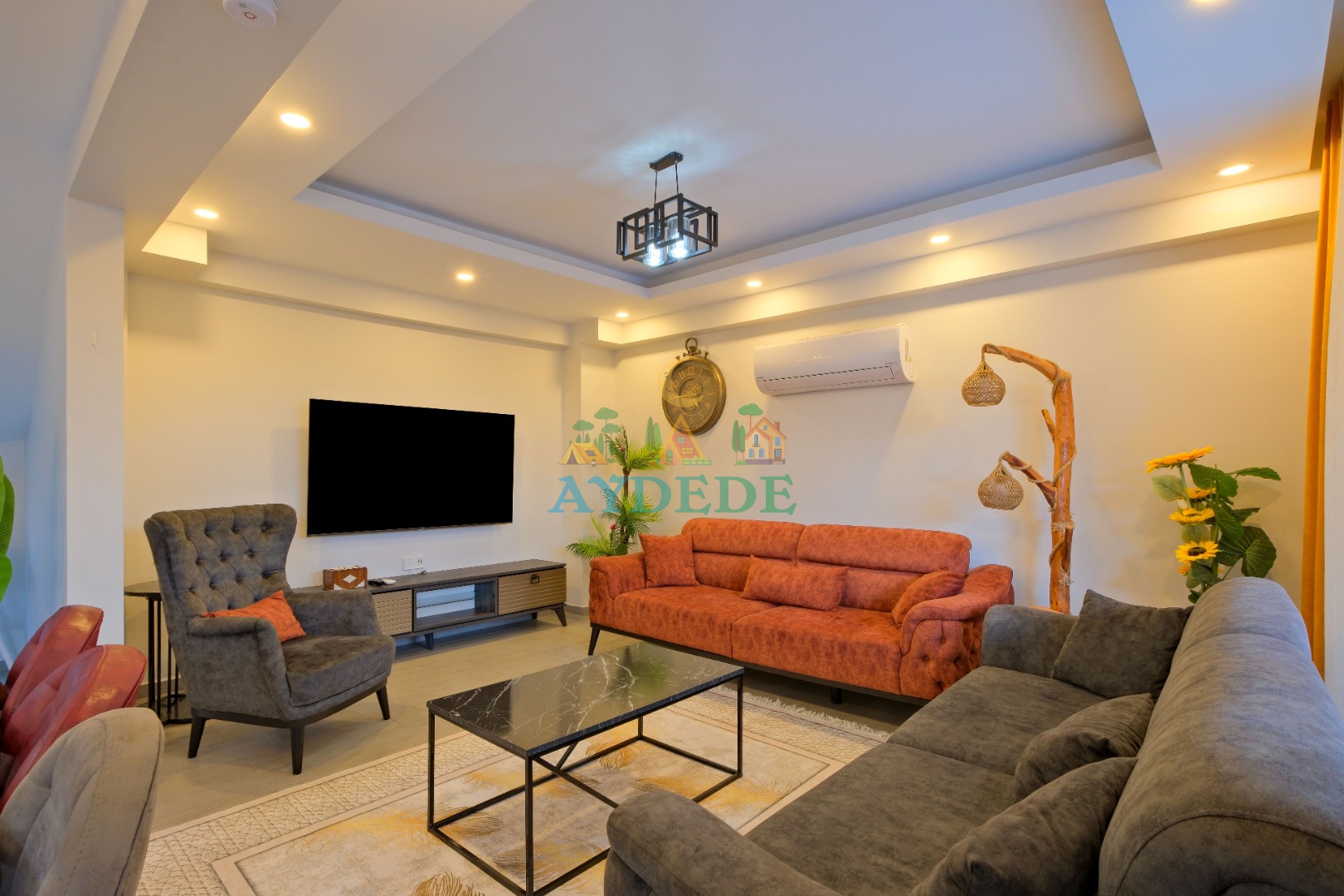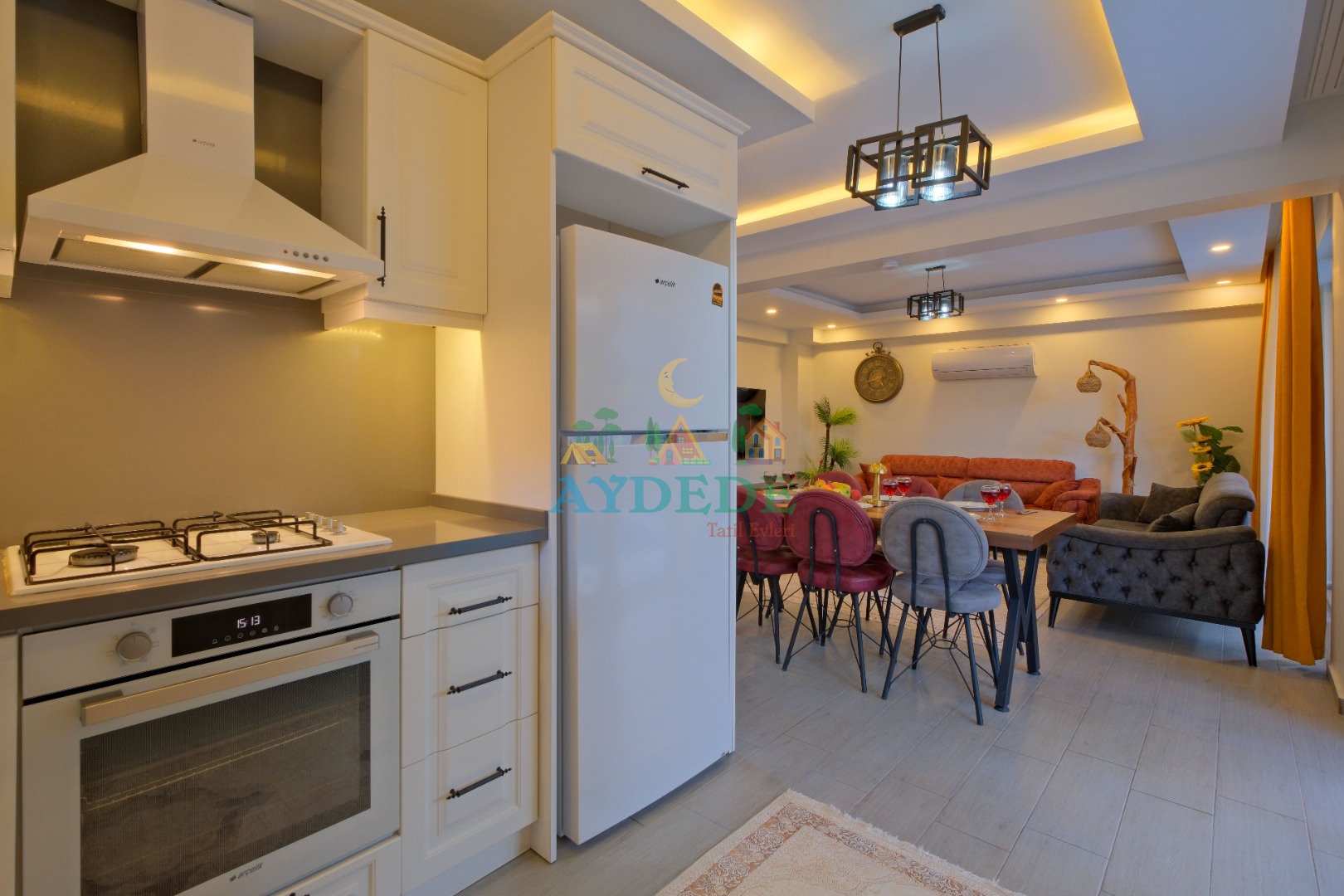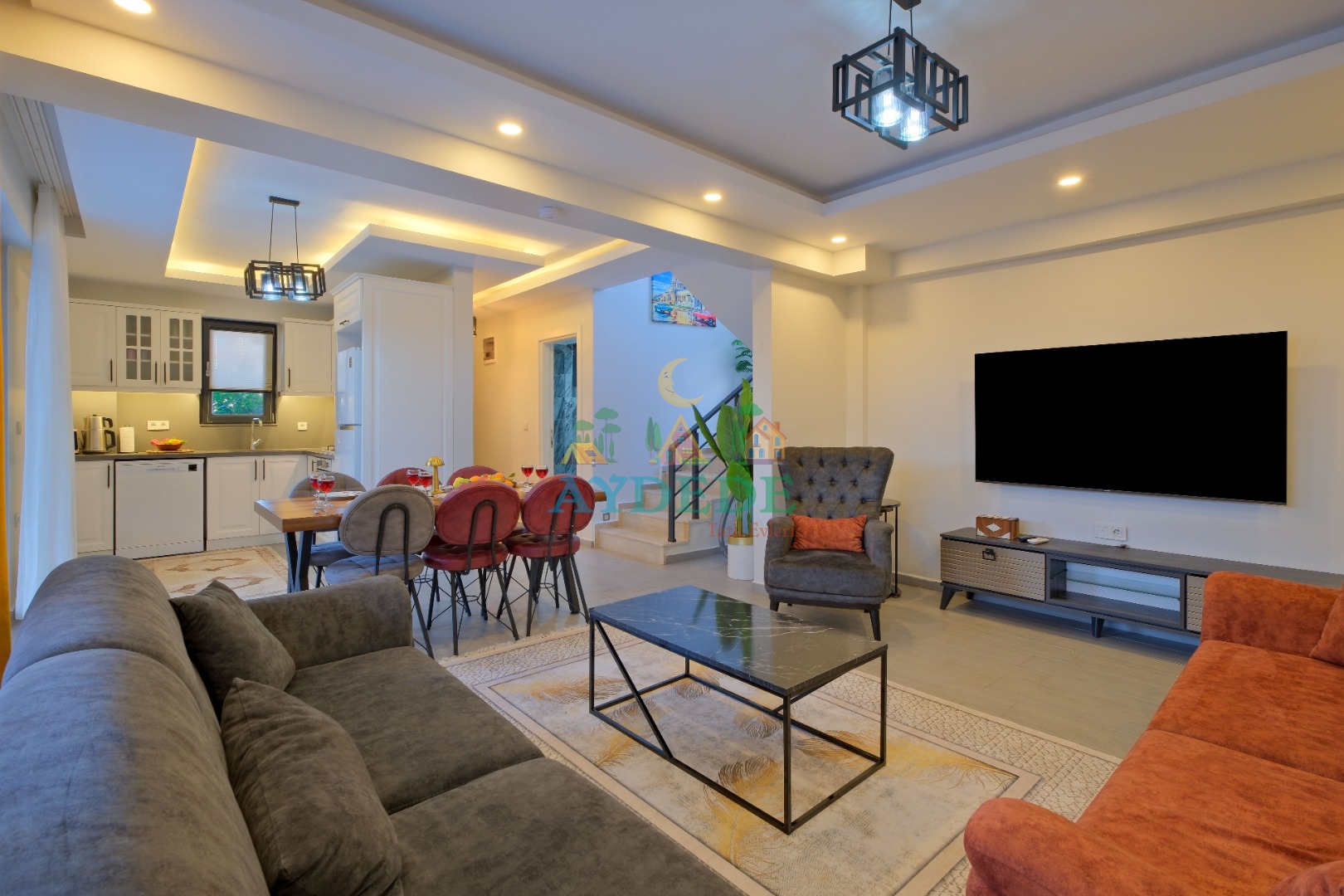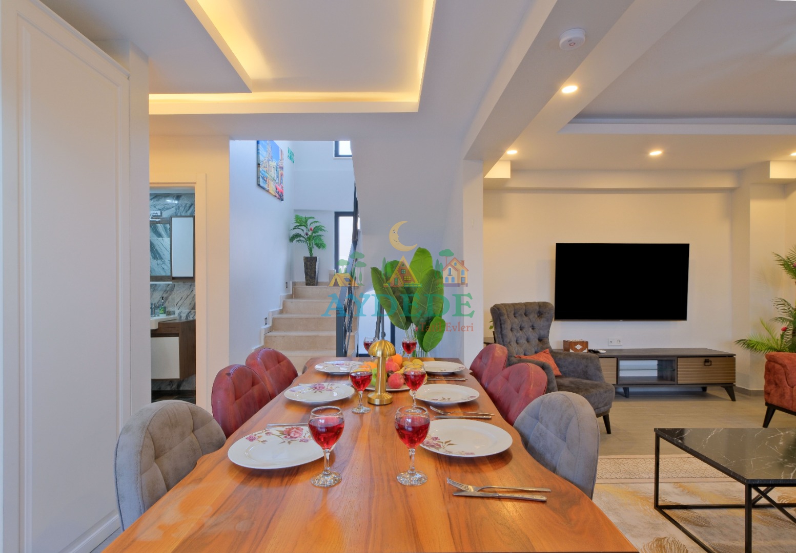 ▪Açık mutfak salonda , klima, Tv ,modern oturma grubu ,yemek masası bulunmaktadır.