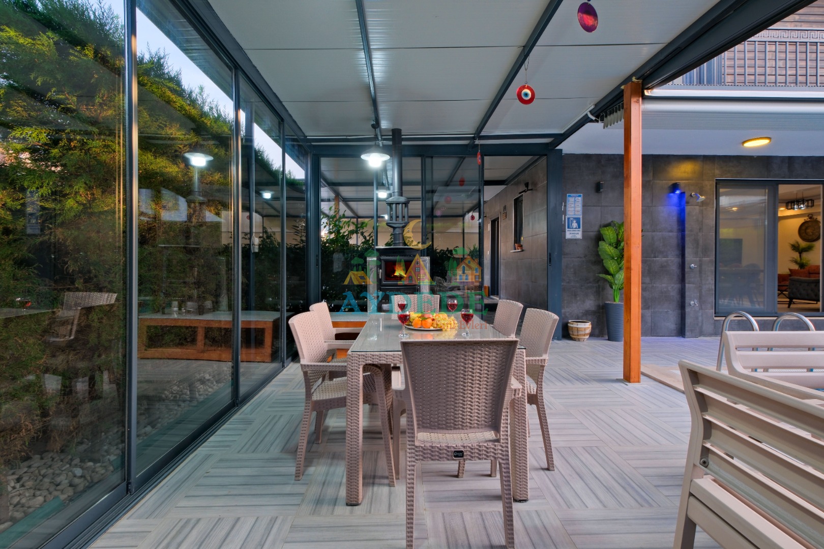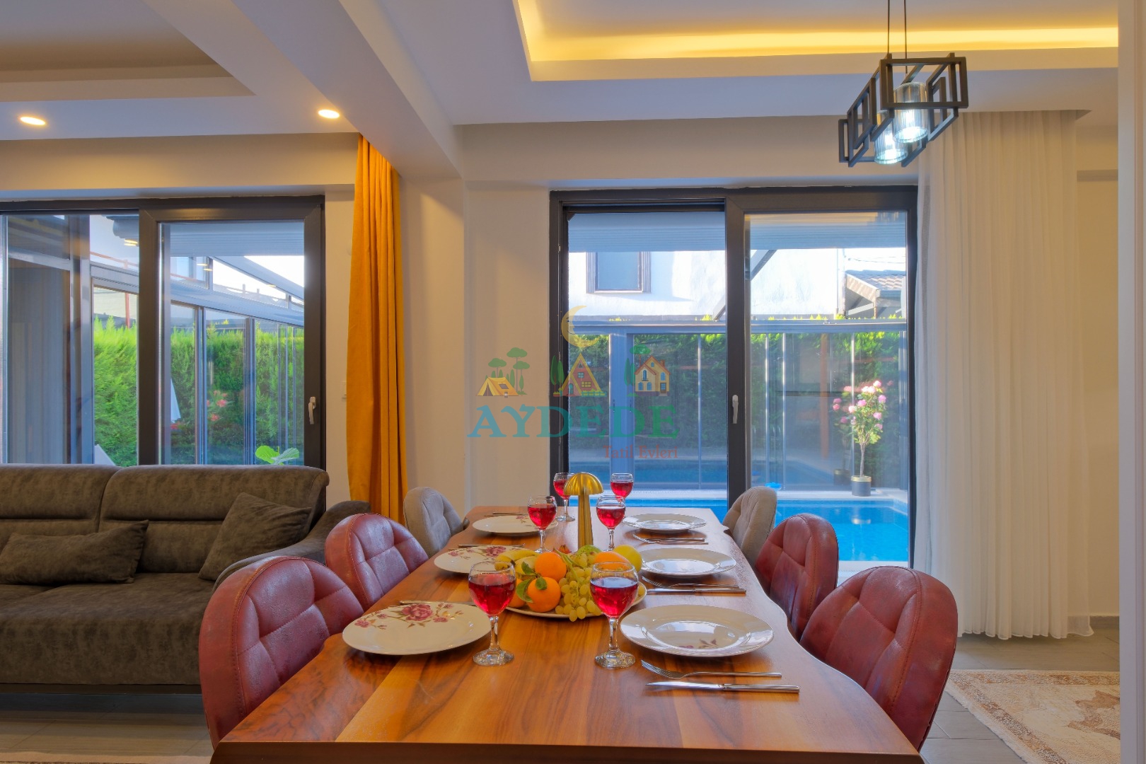 ▪️Villamız kış aylarına uygundur. Villa önündeki açık havuzun üstü ve çevresi cam ile kapatılmıştır.Havuz ısıtmalı sıcak havuz konseptine geçiş yapılmıştır. Havuz üzeri ve çevresi yazın açılabiliyor. Görseller geçen yıla ait olduğu için havuz çevresinin kapalı güncel videosu için Whatsapptan bize yazabilirsiniz.