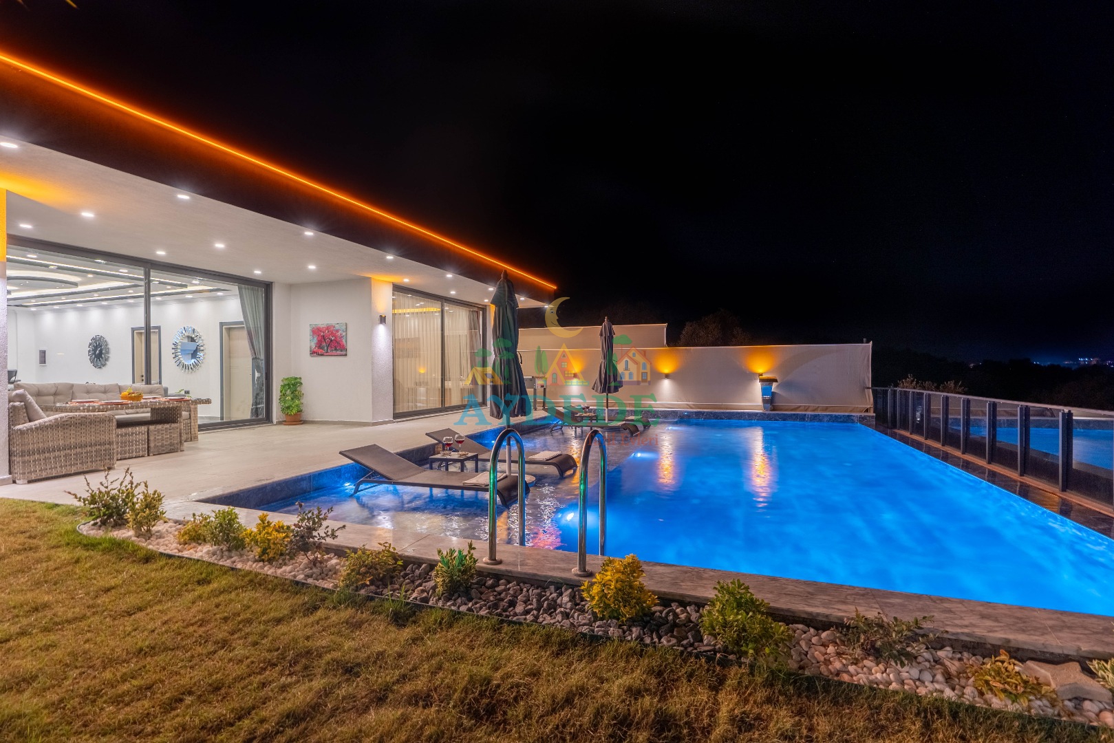 • Tam korunaklı özel havuz ve bahçe alanına sahiptir