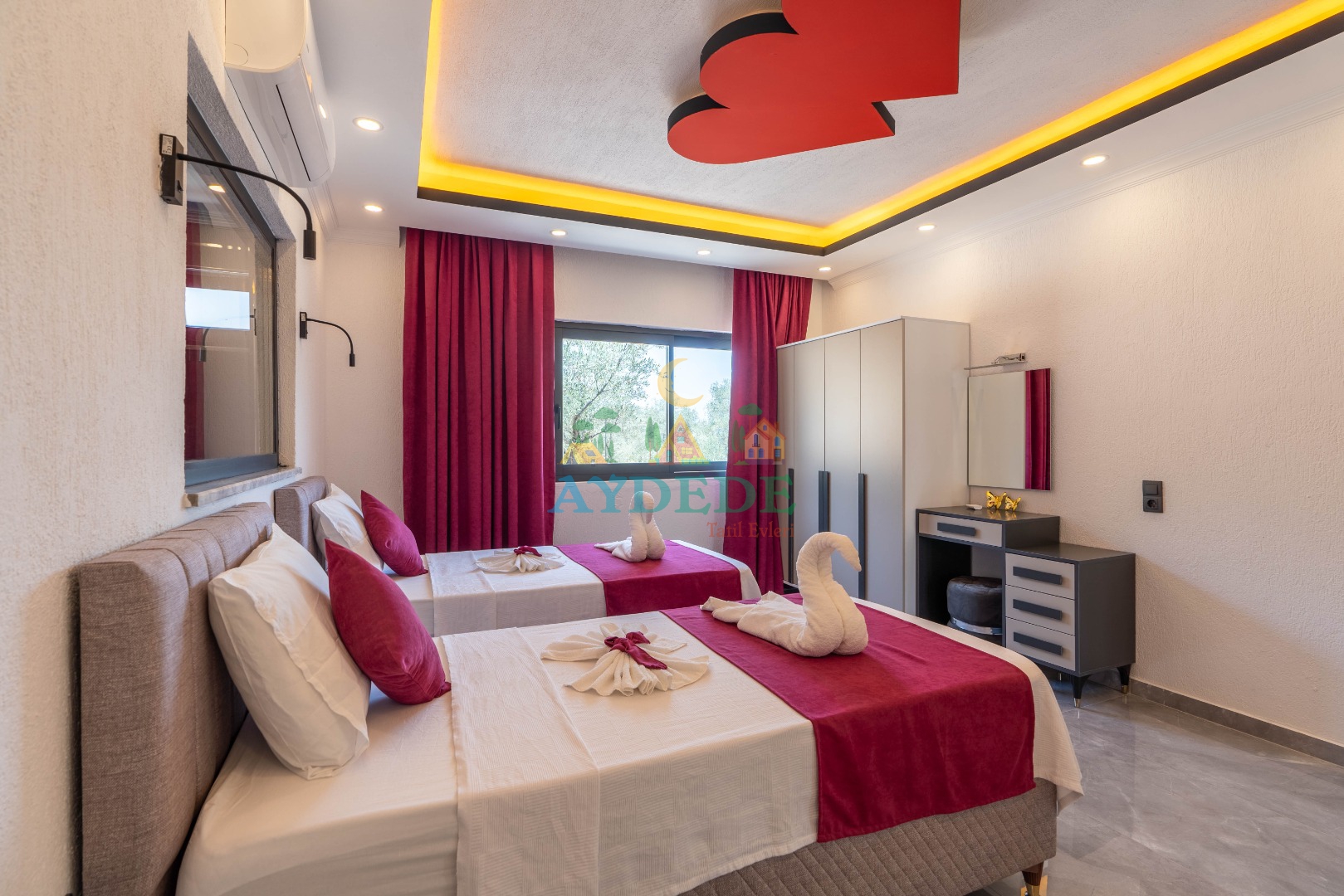 2 adet tek kişilik yatak, klima, ebeveyn banyo