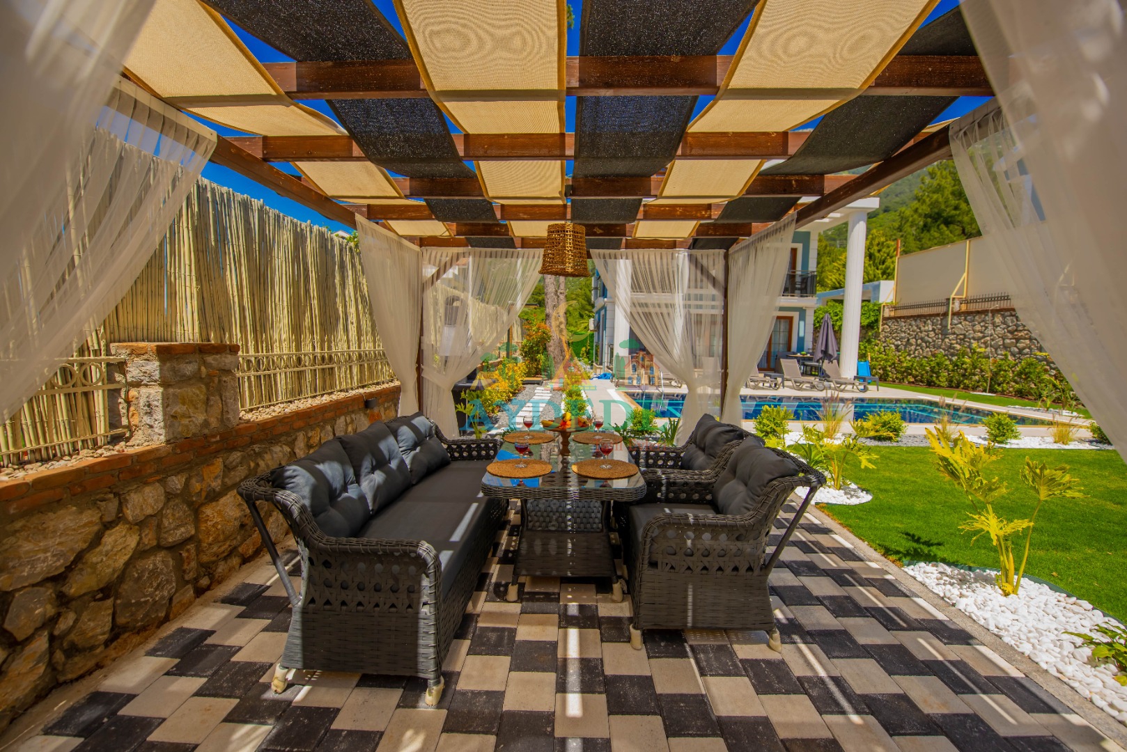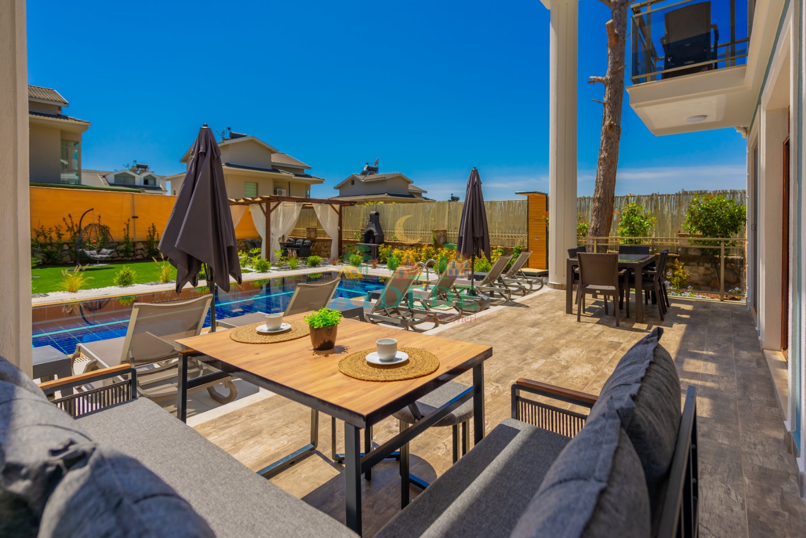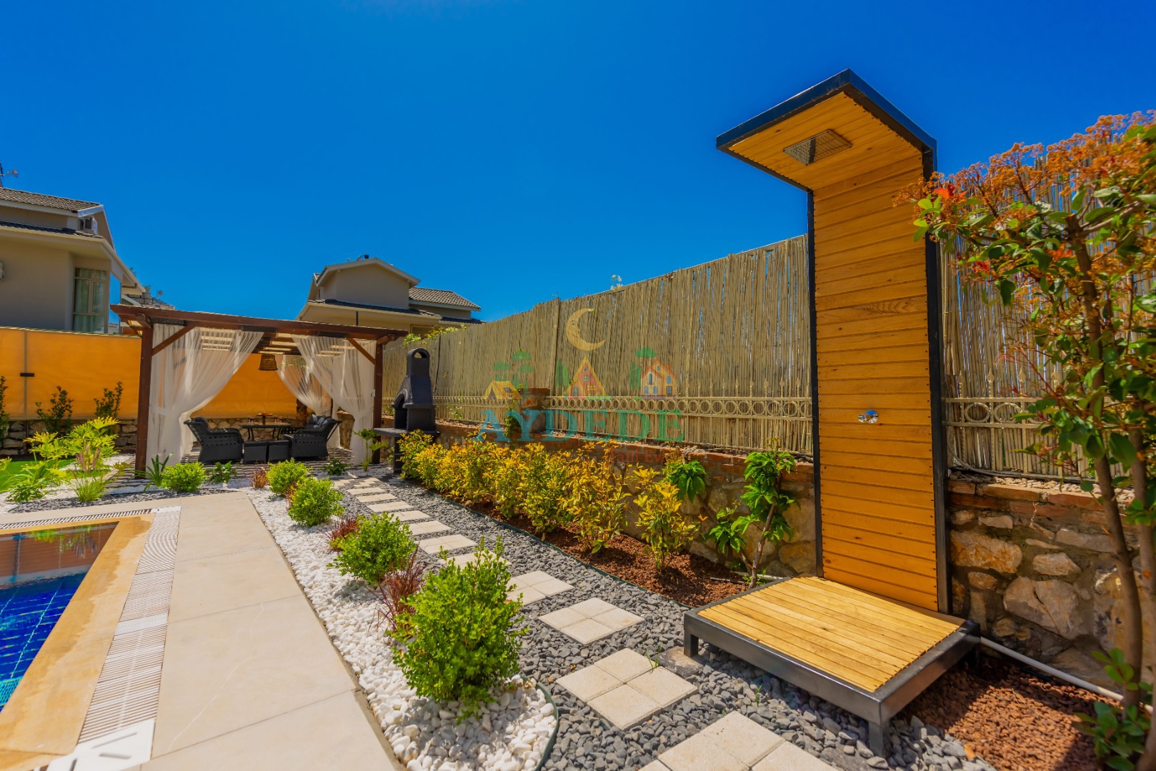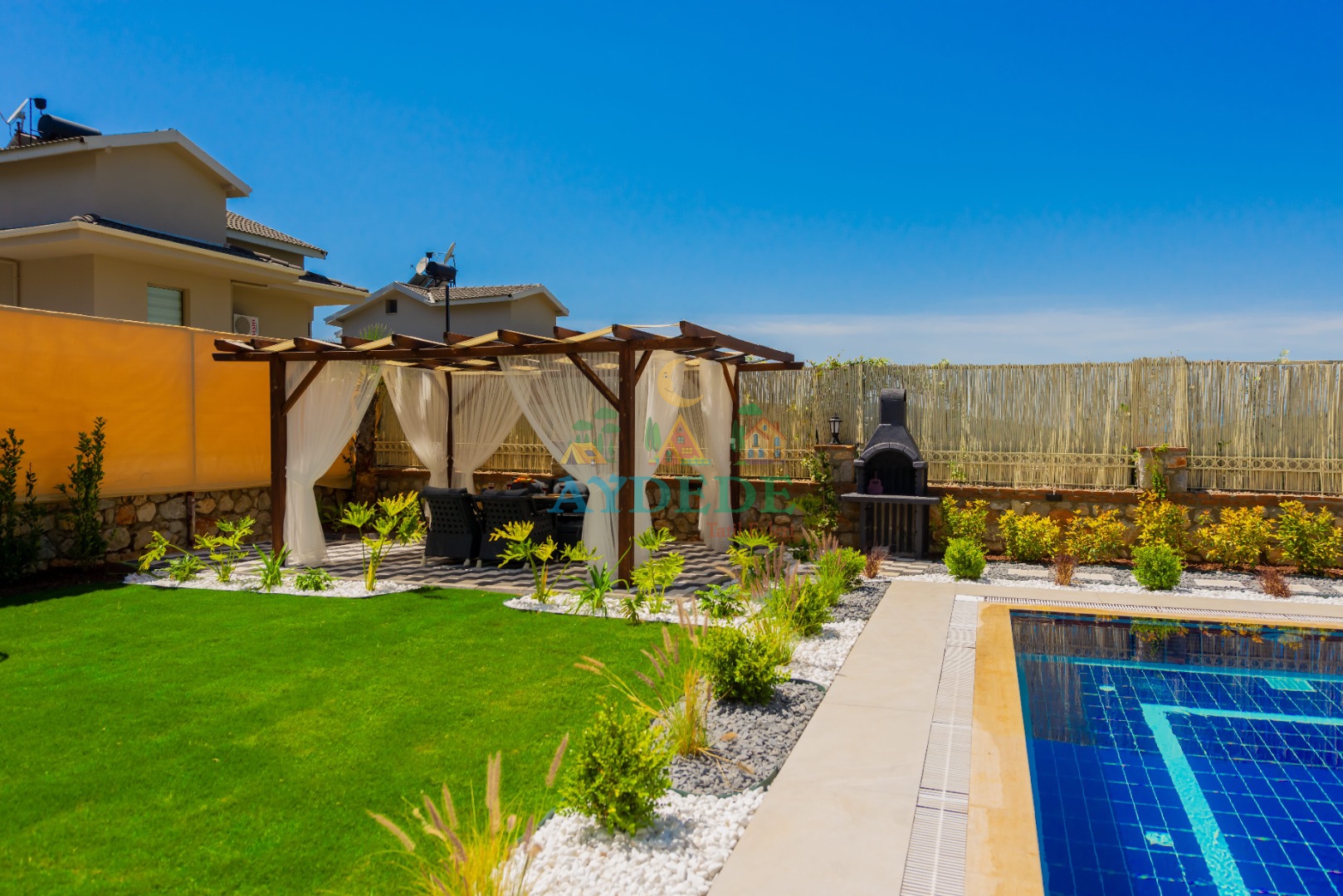 - Korunaklı havuz bahçe