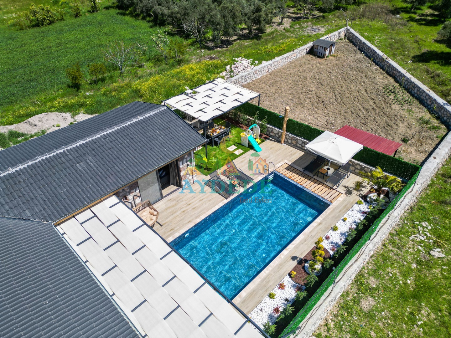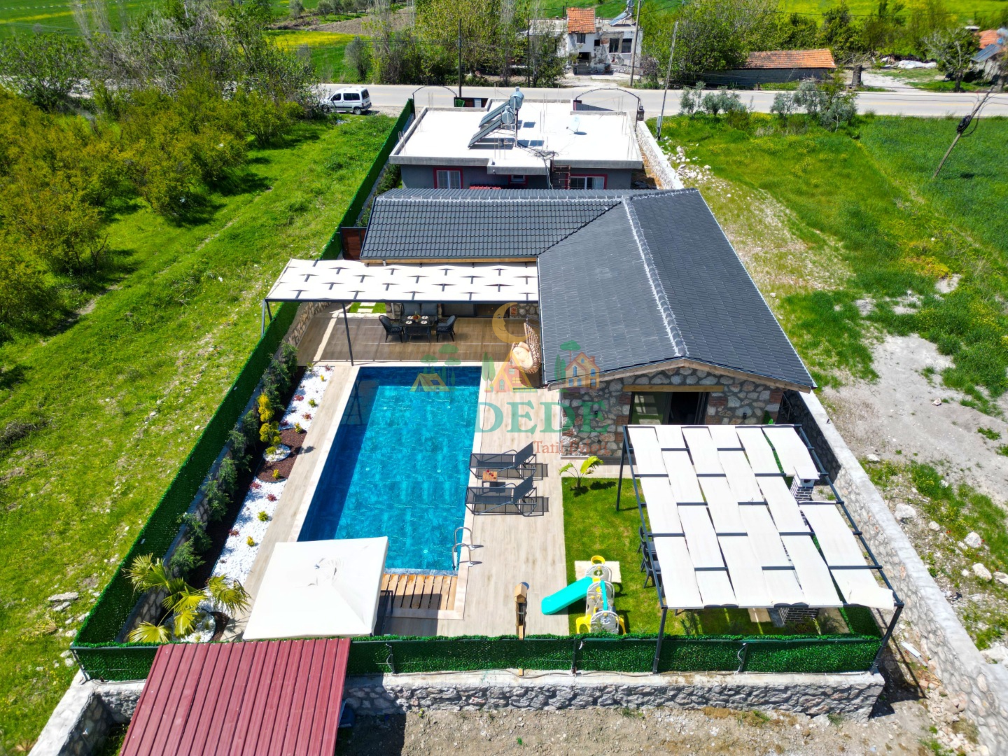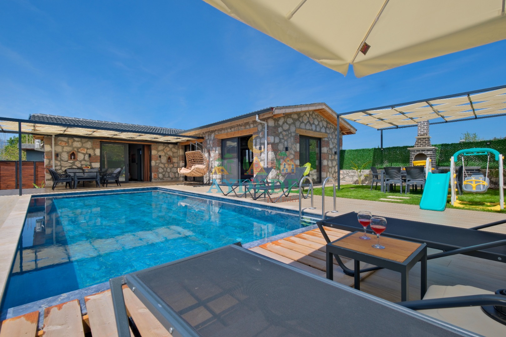 - Korunaklı havuz bahçe