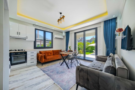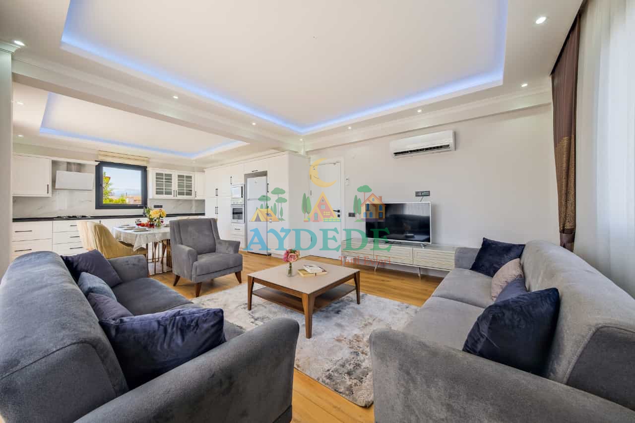 • Salonlarda klima, TV, modern oturma grubu, şömine ve yemek alanı