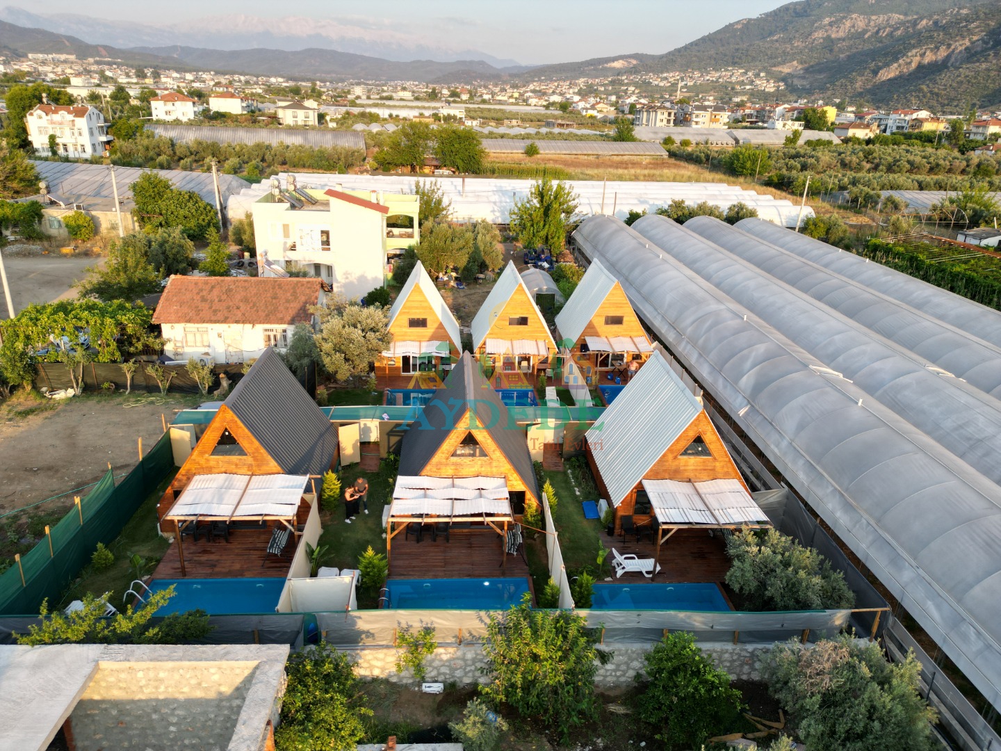 Fethiye / Çalıca mevkiinde konumlanan, aynı arazi içerisinde yan yana yer alan 6 adet üçgen bungalov; merkezi konumu, pratik yapısı ve uygun fiyat avantajıyla özellikle çekirdek aileler ve küçük gruplar için keyifli bir tatil alternatifi sunmaktadır.