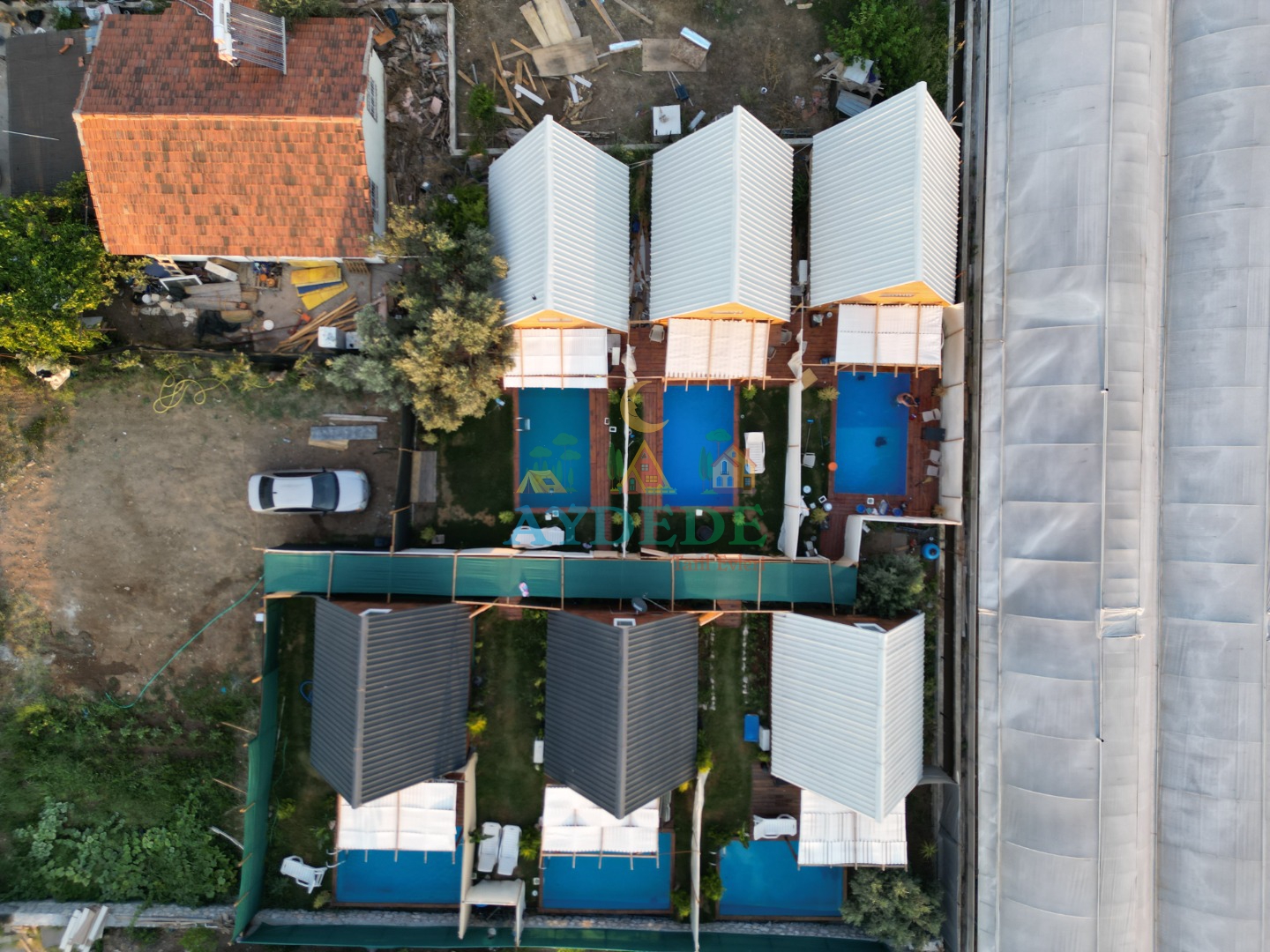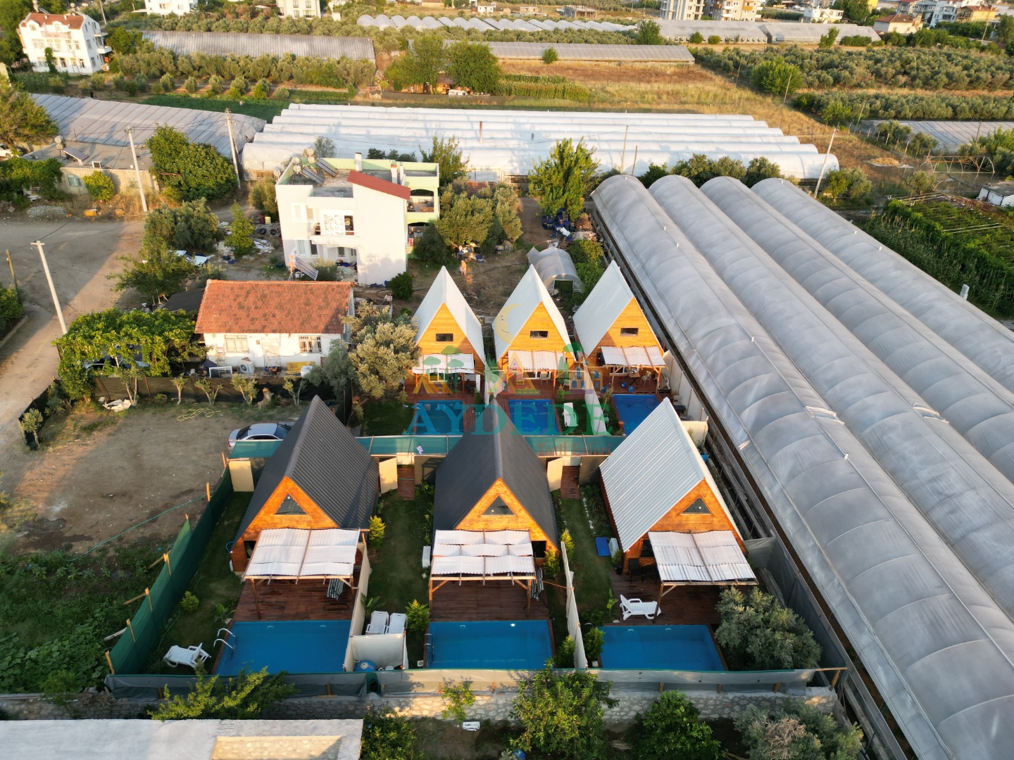 • Aynı arazi içerisinde 6 adet yan yana konumlanmış bungalov bulunmaktadır (Üçgen Bungalov 1 - Üçgen Bungalov 2 - Üçgen Bungalov 3 - Üçgen Bungalov 4 Üçgen Bungalov 5 - Üçgen Bungalov 6)