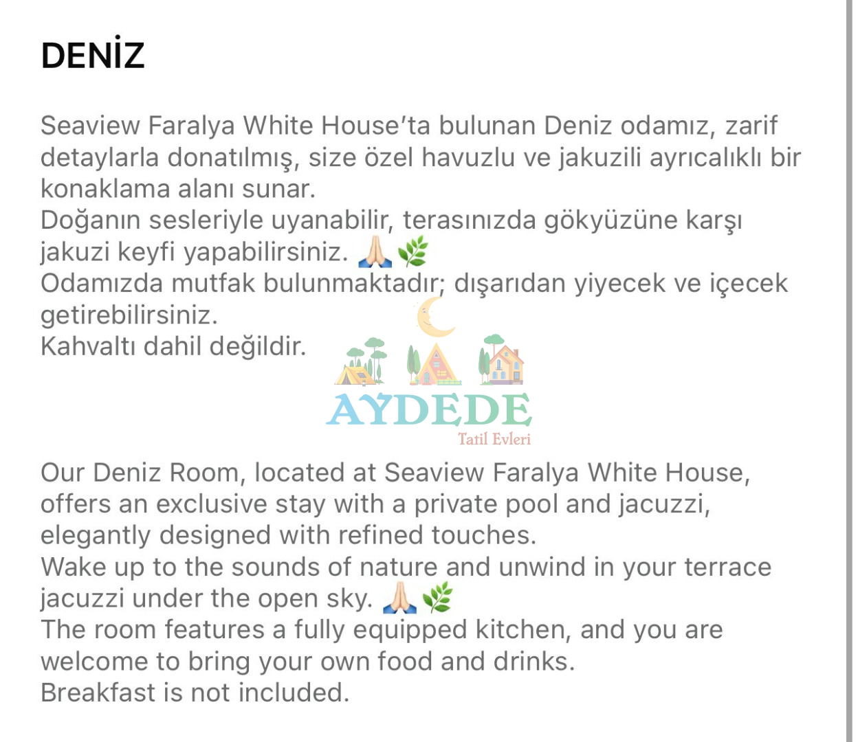▪️ Özel havuzlu ve jakuzili odaları olan, kişiye özel hizmet veren butik balayı otelidir.