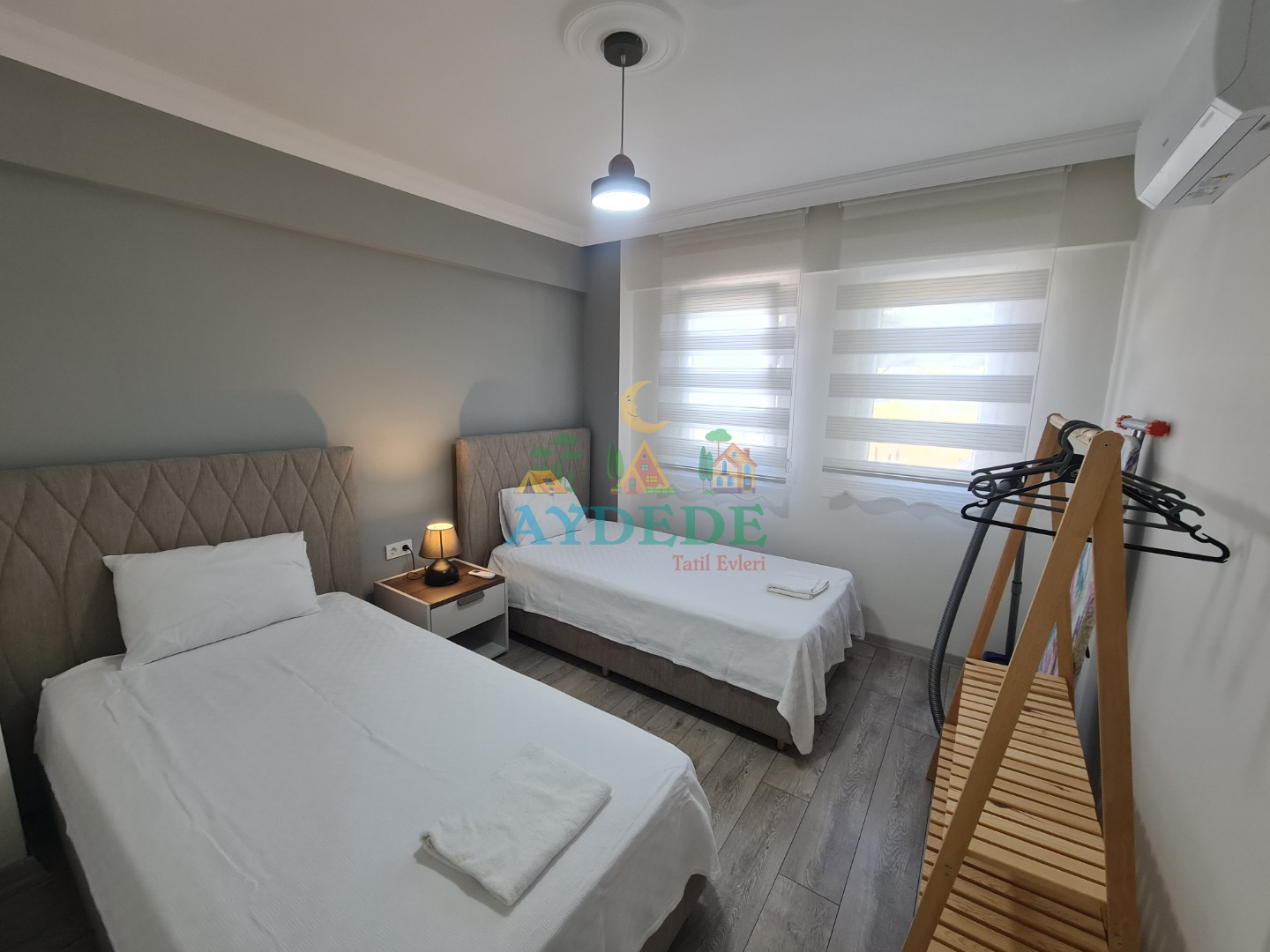 2 adet tek kişilik yatak, klima