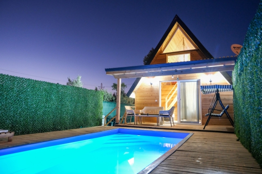 ▪️Aynı arazi içinde 2 tane yan yana bungalov bulunuyor, ikisi de birebir aynıdır. Tek fark evin önündeki havuz Zeytin bungalov 1 de yatay konumlandırılmış, Zeytin 2 nin önündeki havuz dikey konumlandırılmıştır.