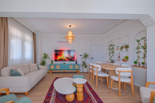Fethiye / Çamköy’de konumlanan, 6–7 kişilik konaklama kapasitesine sahip 4+1 Kovan Apart; geniş kullanım alanları ve merkezi noktalara ulaşım kolaylığıyla keyifli bir tatil imkânı sunmaktadır.
