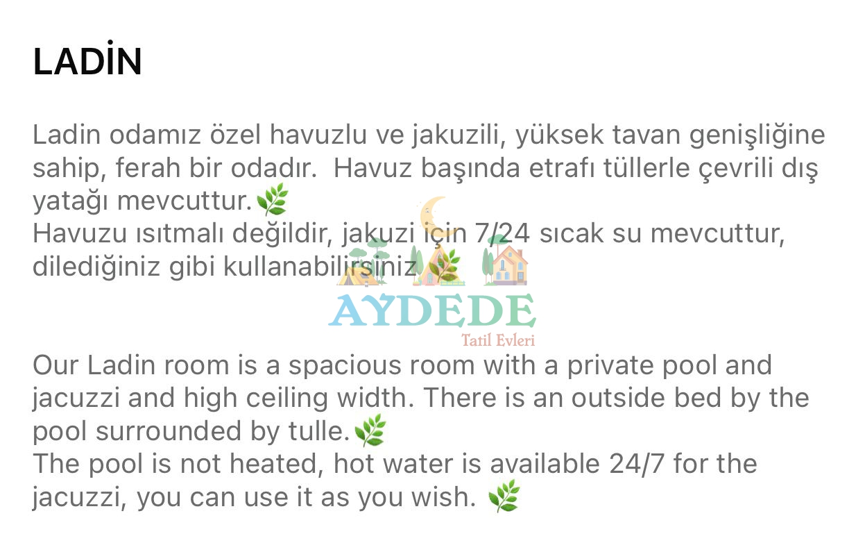 ▪️ Özel havuzlu ve jakuzili  odaları olan, kişiye özel hizmet veren butik balayı otelidir.