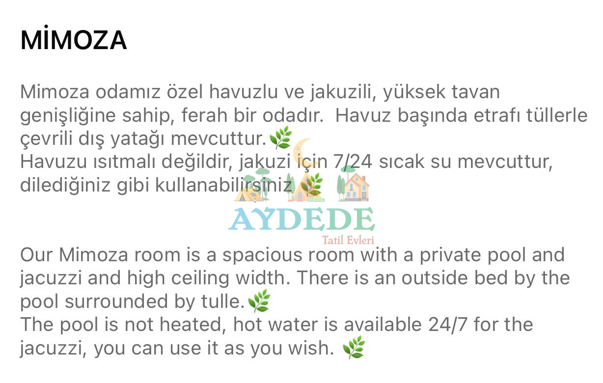▪️ Özel havuzlu ve jakuzili  odaları olan, kişiye özel hizmet veren butik balayı otelidir.