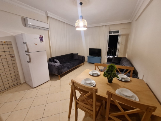 ▪1+1 dairelerde ➖ yatak odasında çift kişilik yatak ,salonda 2 koltuk,mutfak ve banyo bulunur.