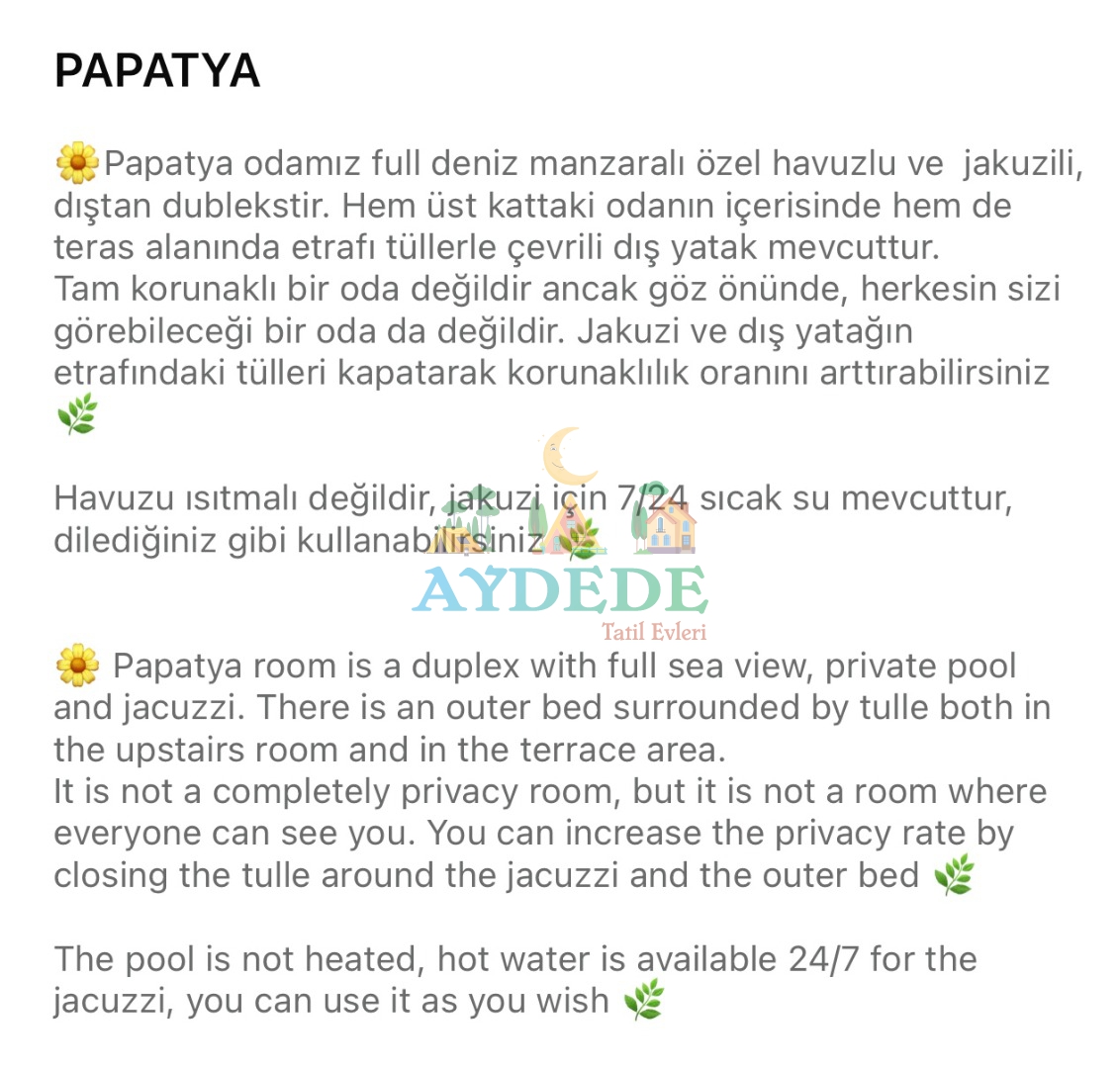 Detaylı bilgi için konaklamak istediğiniz tarihleri bizimle paylaşabilirsiniz.🙏🏻