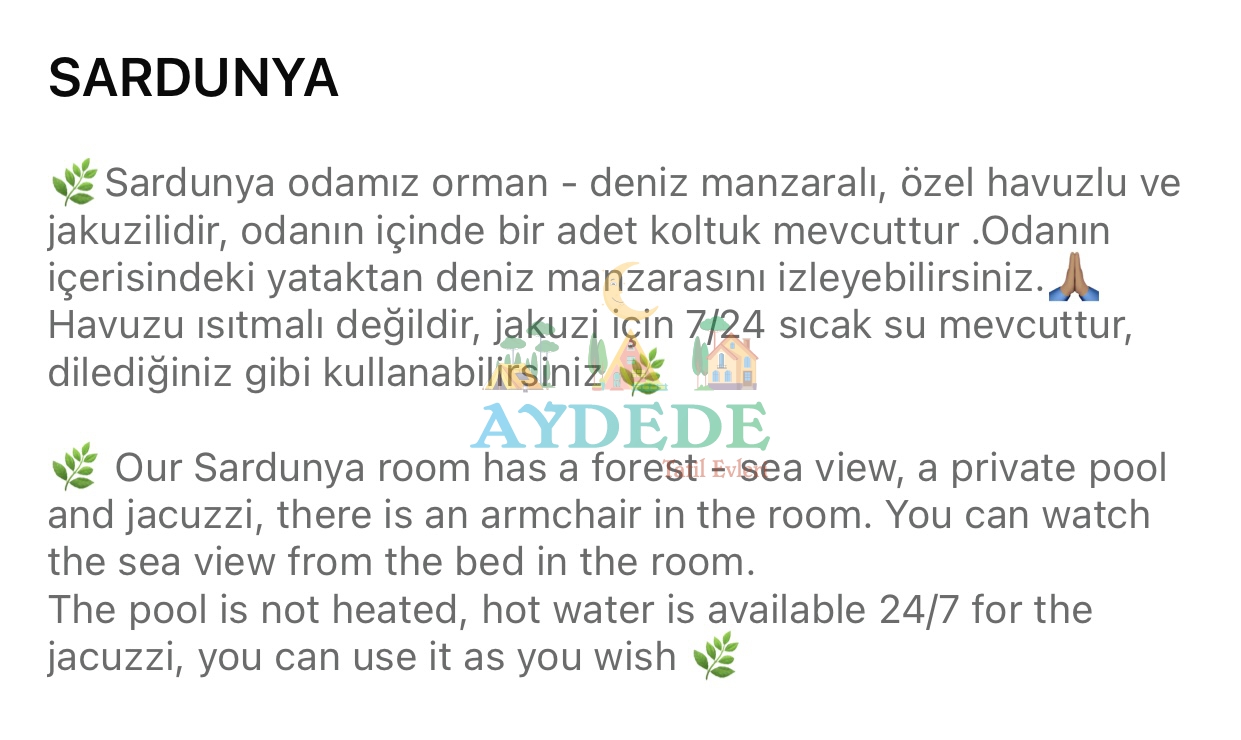 ▪️ Özel havuzlu ve jakuzili  odaları olan, kişiye özel hizmet veren butik balayı otelidir.