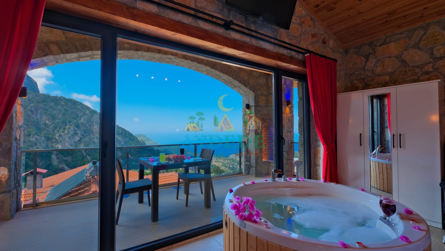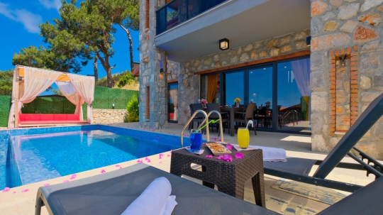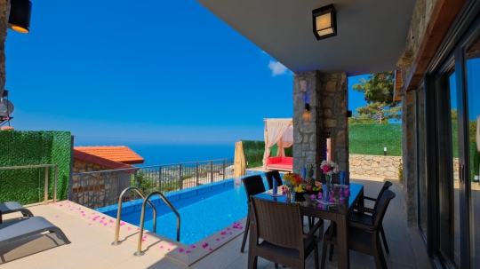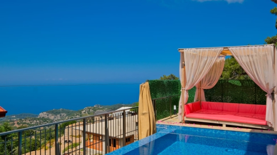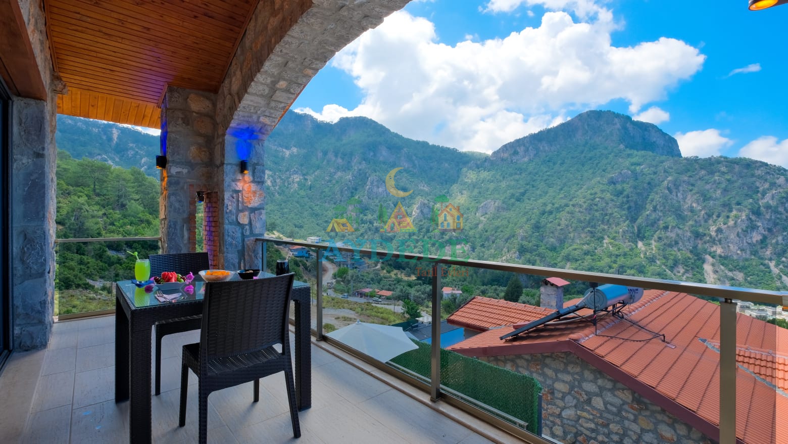 🏡 Villa Şato 4 – Fethiye Faralya Kirme’de Deniz Manzaralı, Jakuzili & Saunalı 1+1 Dubleks Villa