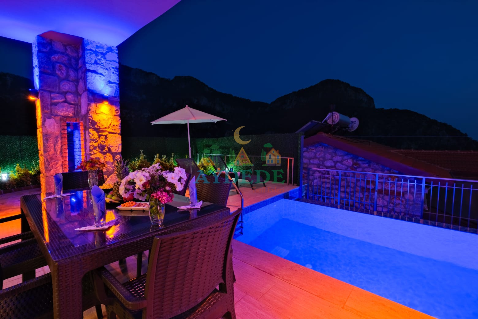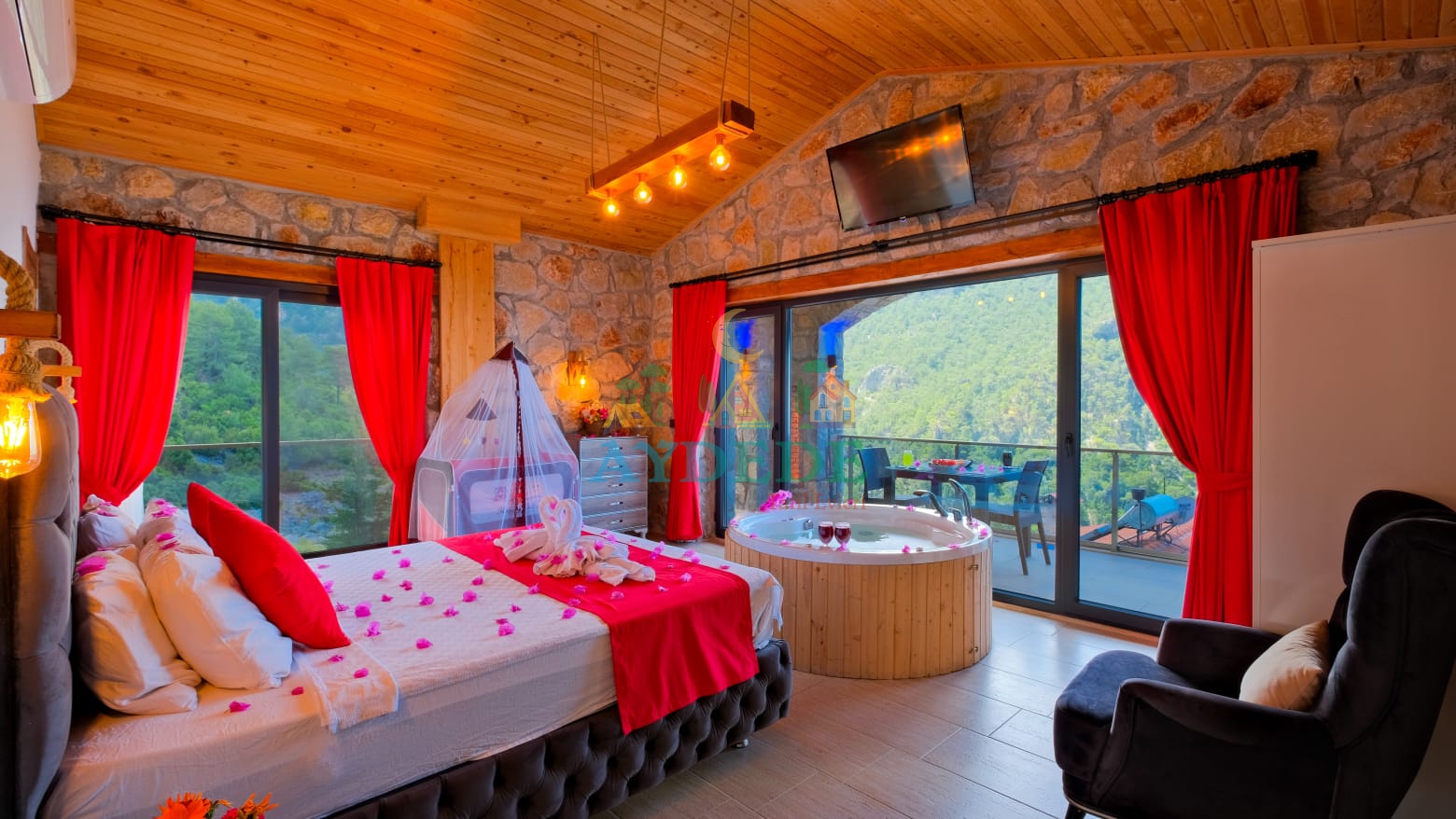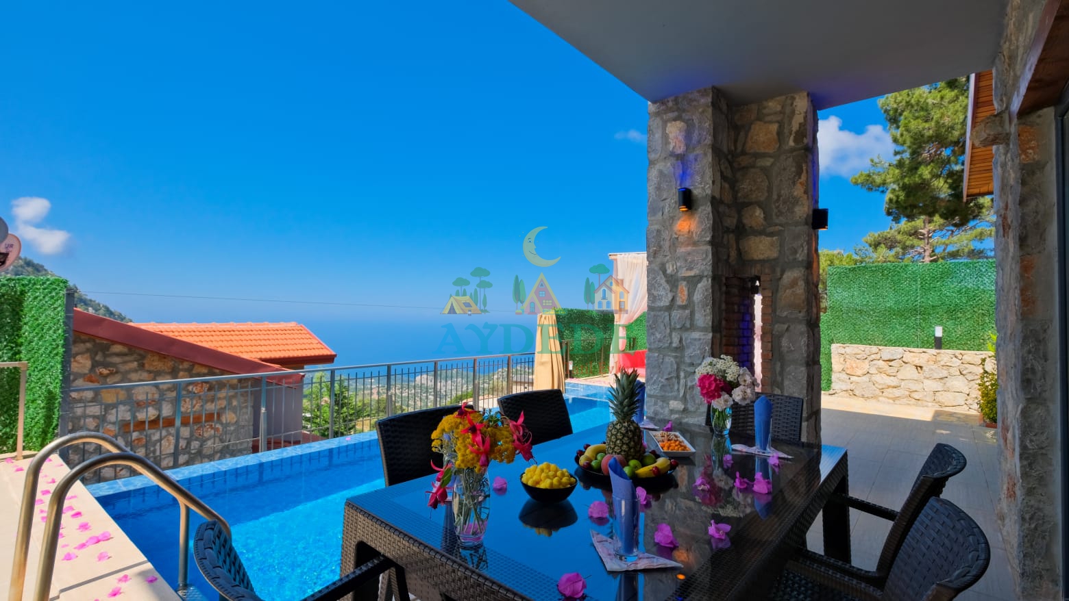 🏡 Villa Şato 4 – Fethiye Faralya Kirme’de Deniz Manzaralı, Jakuzili & Saunalı 1+1 Dubleks Villa