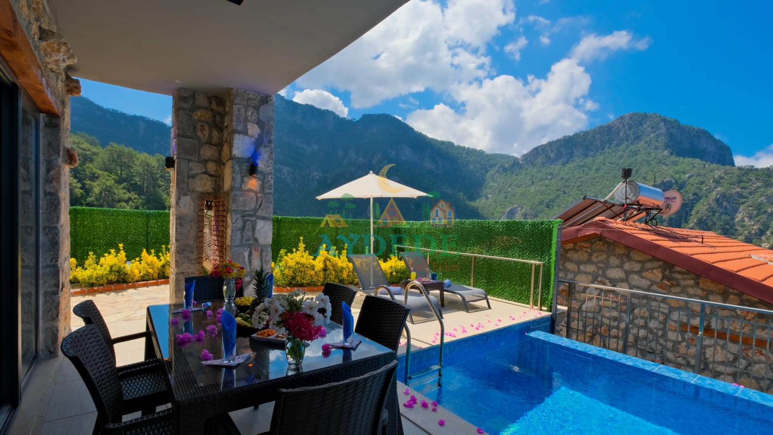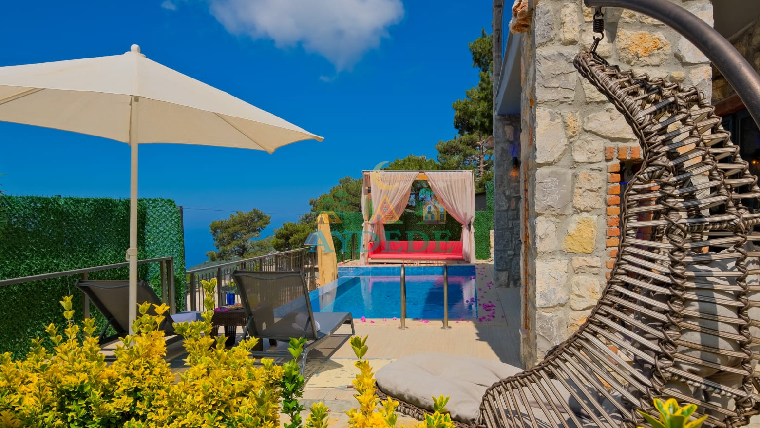 - Korunaklı havuz bahçe
