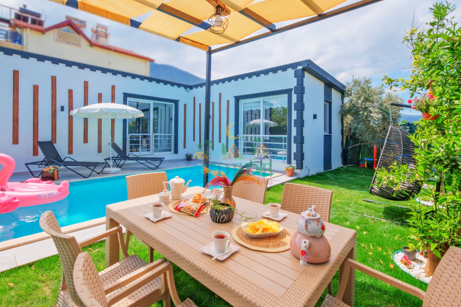- Korunaklı havuz bahçe