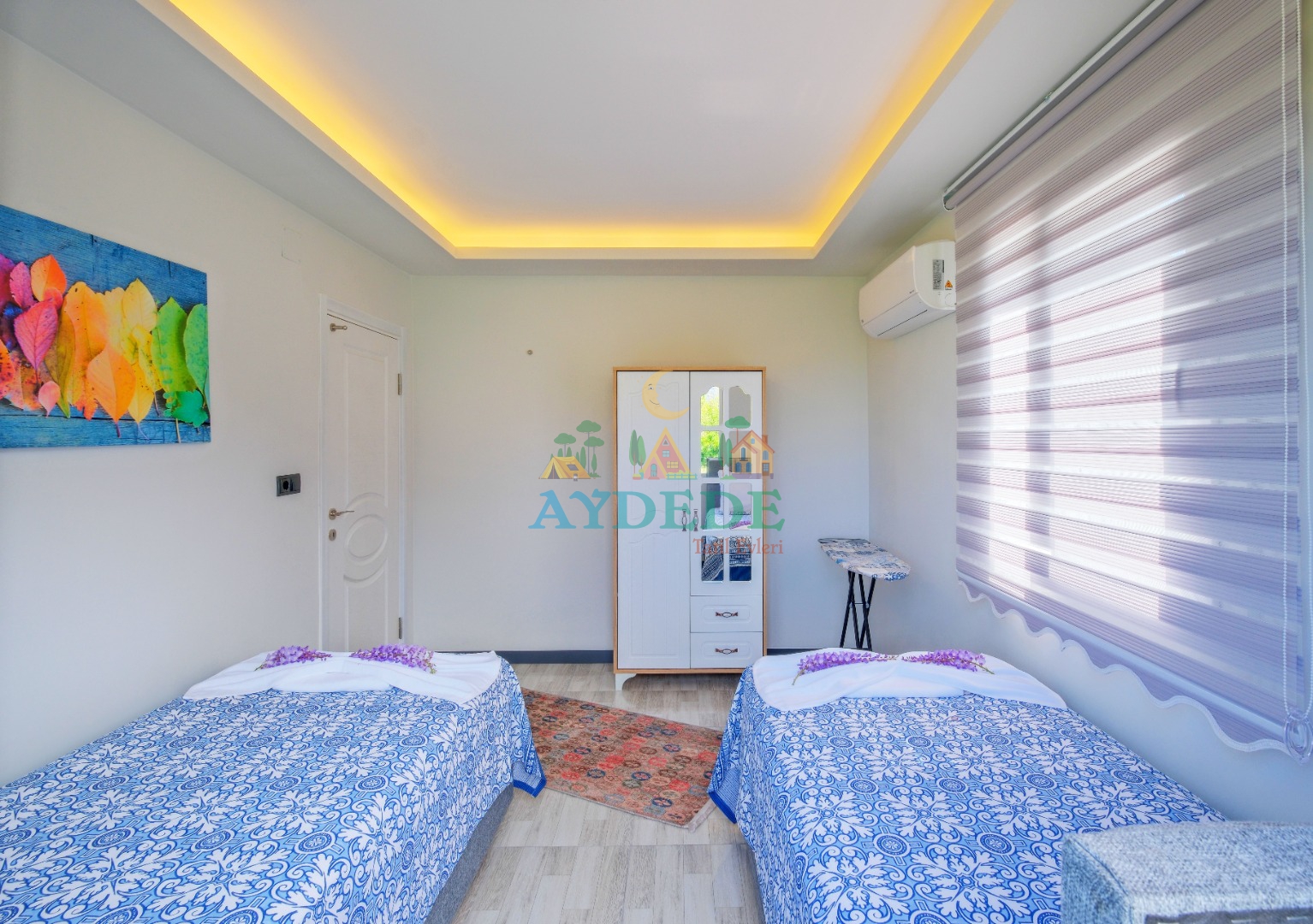 2 adet tek kişilik yatak, ebeveyn banyo, klima