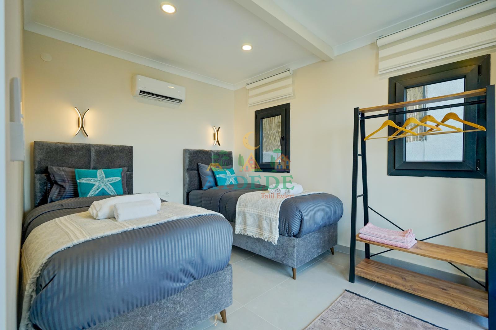 2 adet tek kişilik yatak, klima, banyo & WC