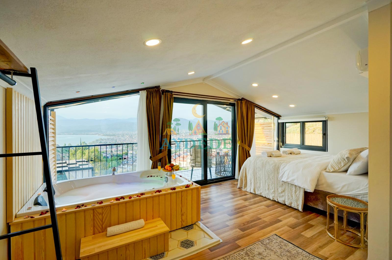 Fethiye merkezde, Aşıklar Tepesi’ne yakın konumda yer alan Villa Aden; jakuzili yatak odası, korunaklı özel havuzu ve merkezi lokasyonu ile hem balayı çiftleri hem de çekirdek aileler için ideal bir tatil seçeneğidir. Şehir merkezine yakın olup aynı zamanda mahremiyet sunan yapısıyla konforlu ve keyifli bir konaklama imkânı sağlar.