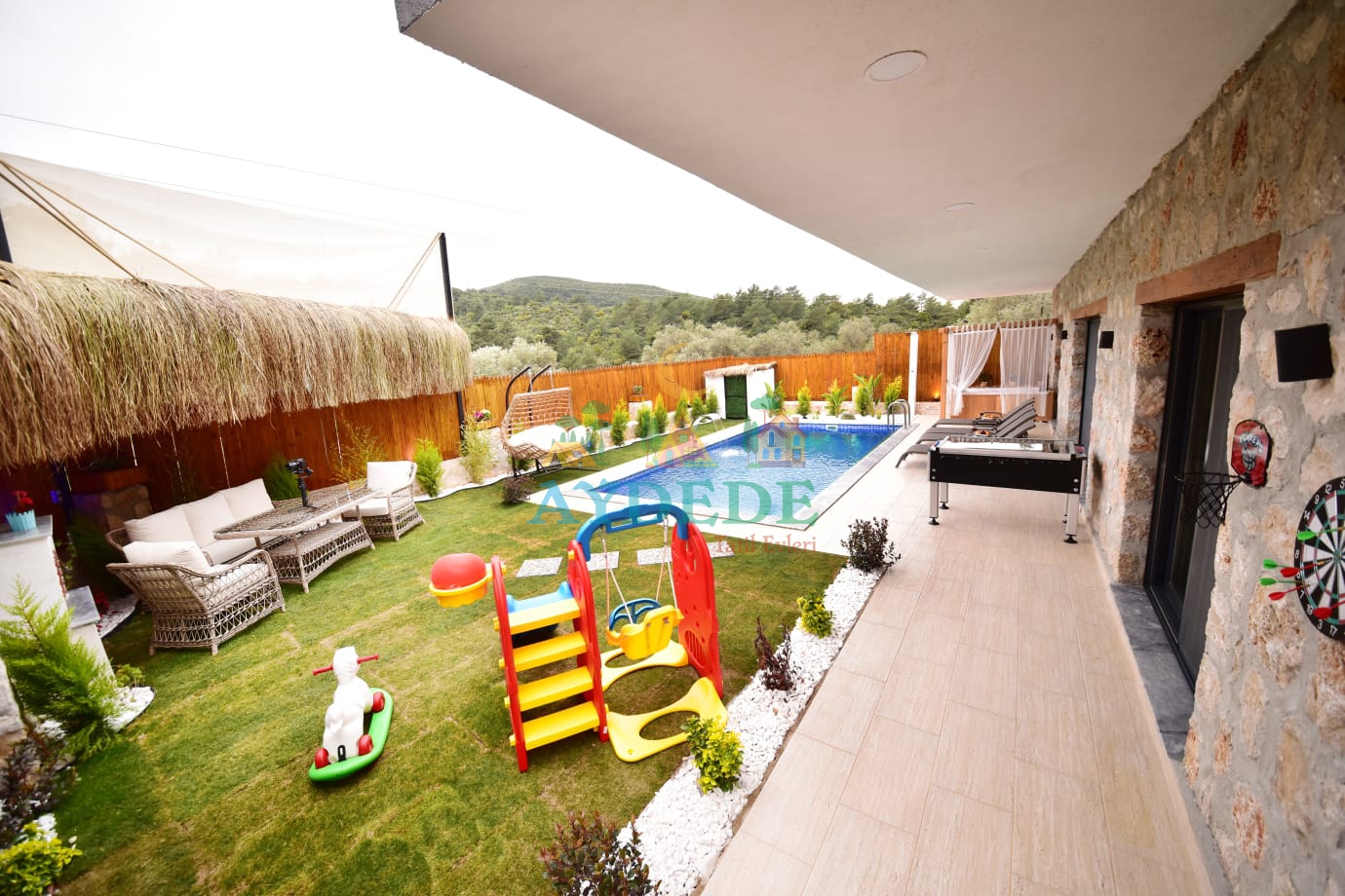 - Korunaklı havuz bahçe