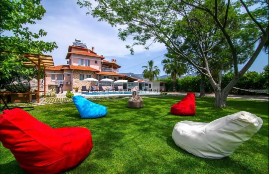 Muğla / Ortaca mevkiinde doğa içerisinde konumlanan Villa Antoryum; geniş bahçesi, özel havuzu ve merkezi lokasyonlara yakınlığı ile kalabalık aileler ve gruplar için konforlu bir tatil imkânı sunmaktadır. İztuzu Plajı’na, Dalyan Nehri’ne ve Kaunos Antik Kenti’ne kolay ulaşım avantajına sahiptir.