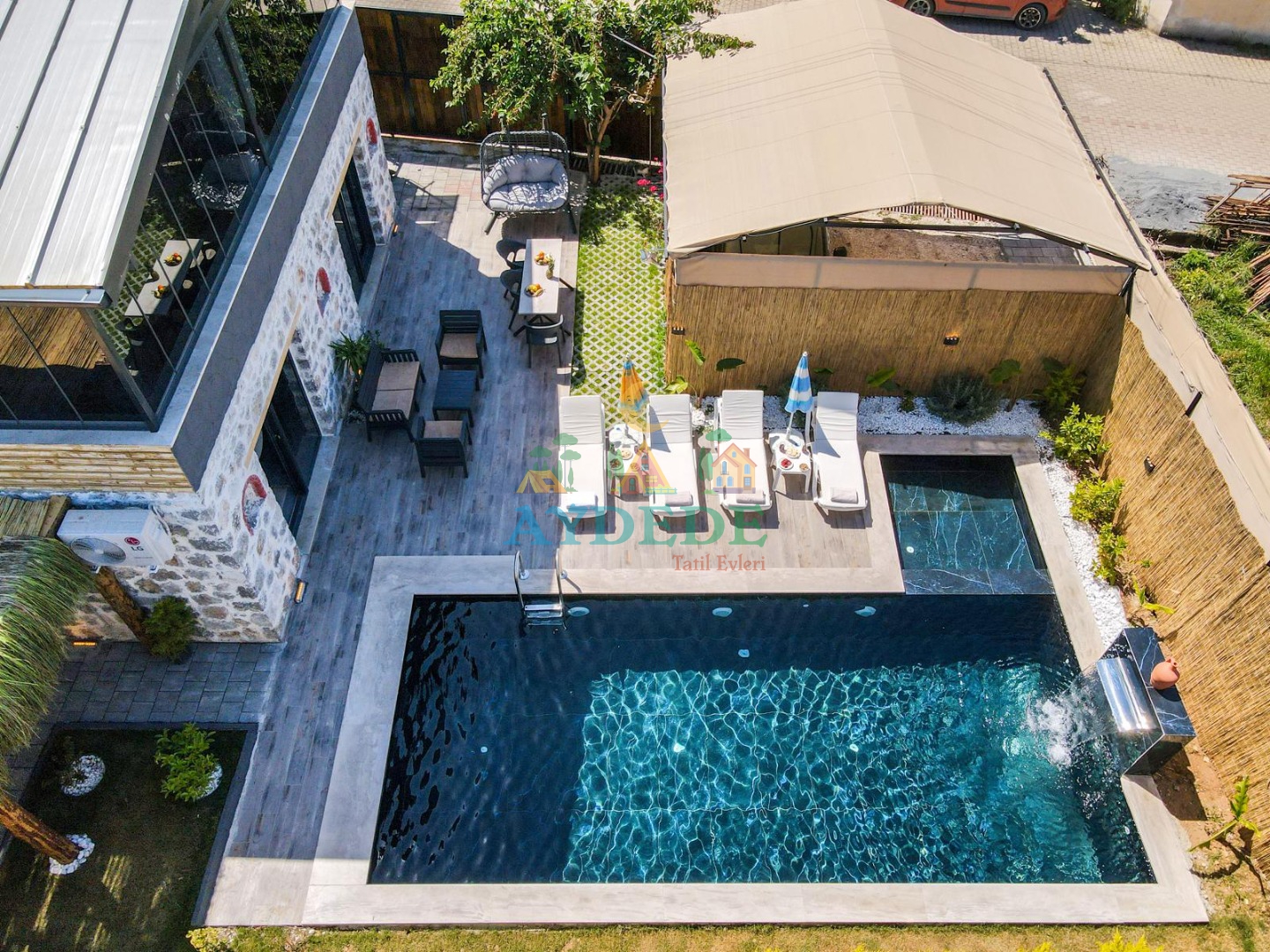 - Korunaklı havuz bahçe