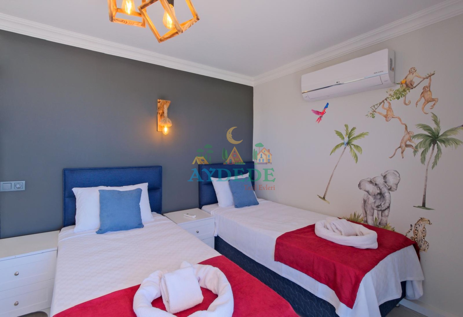 2 adet tek kişilik yatak, klima