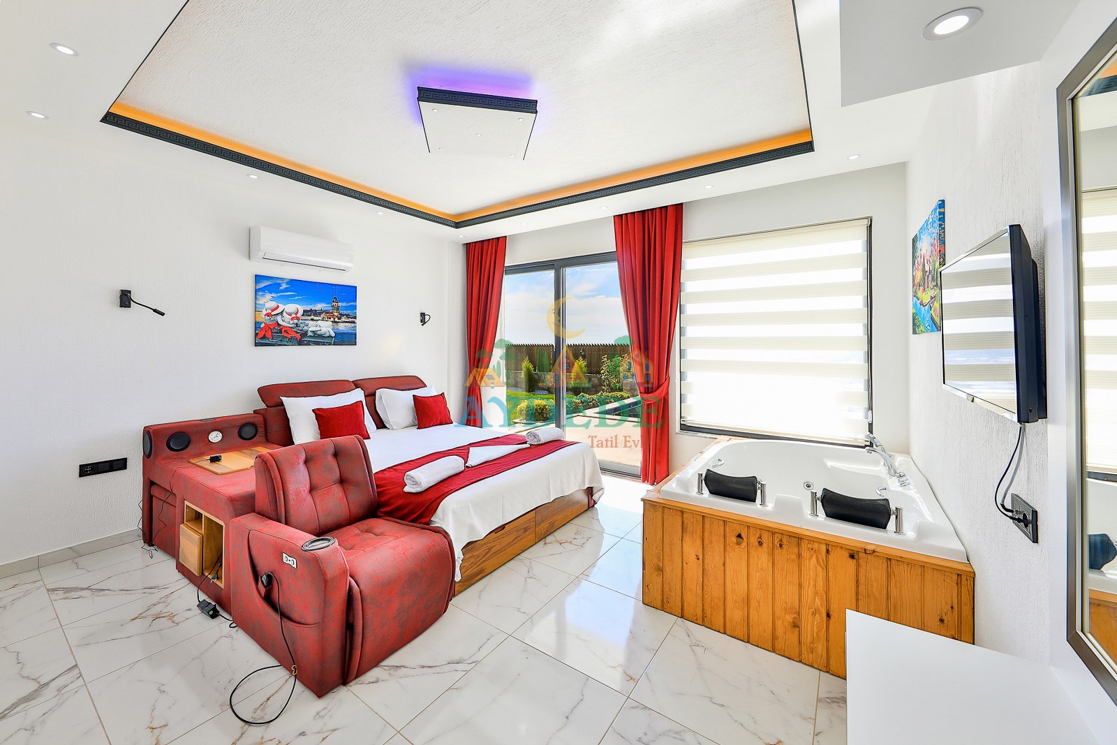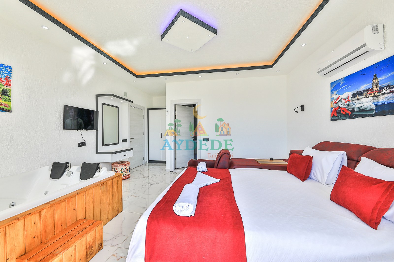 Çift kişilik yatak, klima, jakuzi, ebeveyn banyo