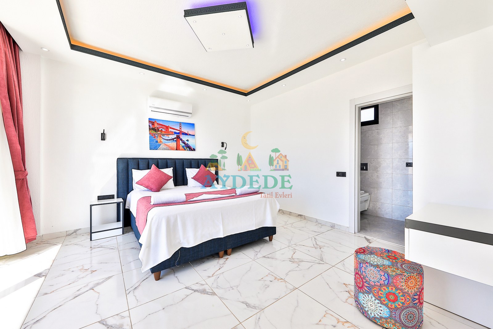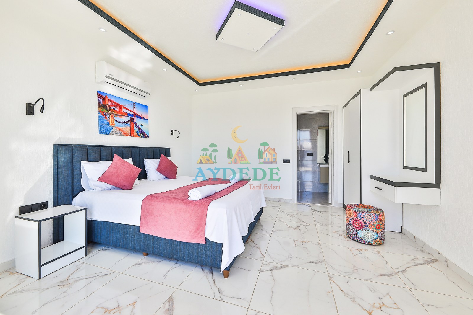 Çift kişilik yatak, klima, ebeveyn banyo