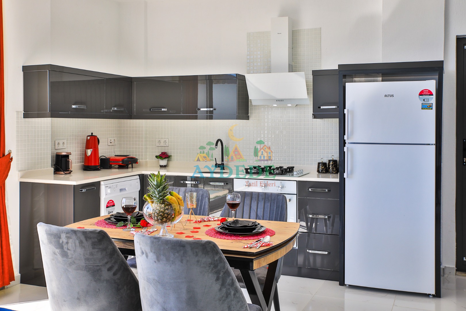 • Mutfakta ihtiyaç duyulabilecek tüm mutfak araç gereçleri bulunmaktadır