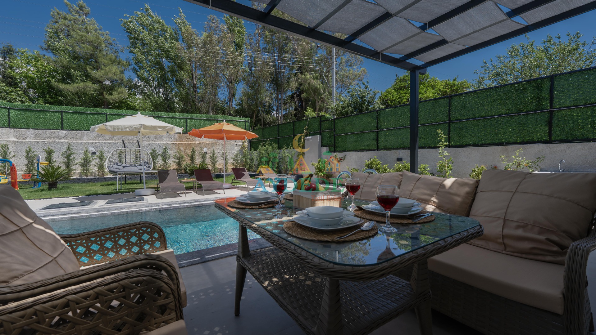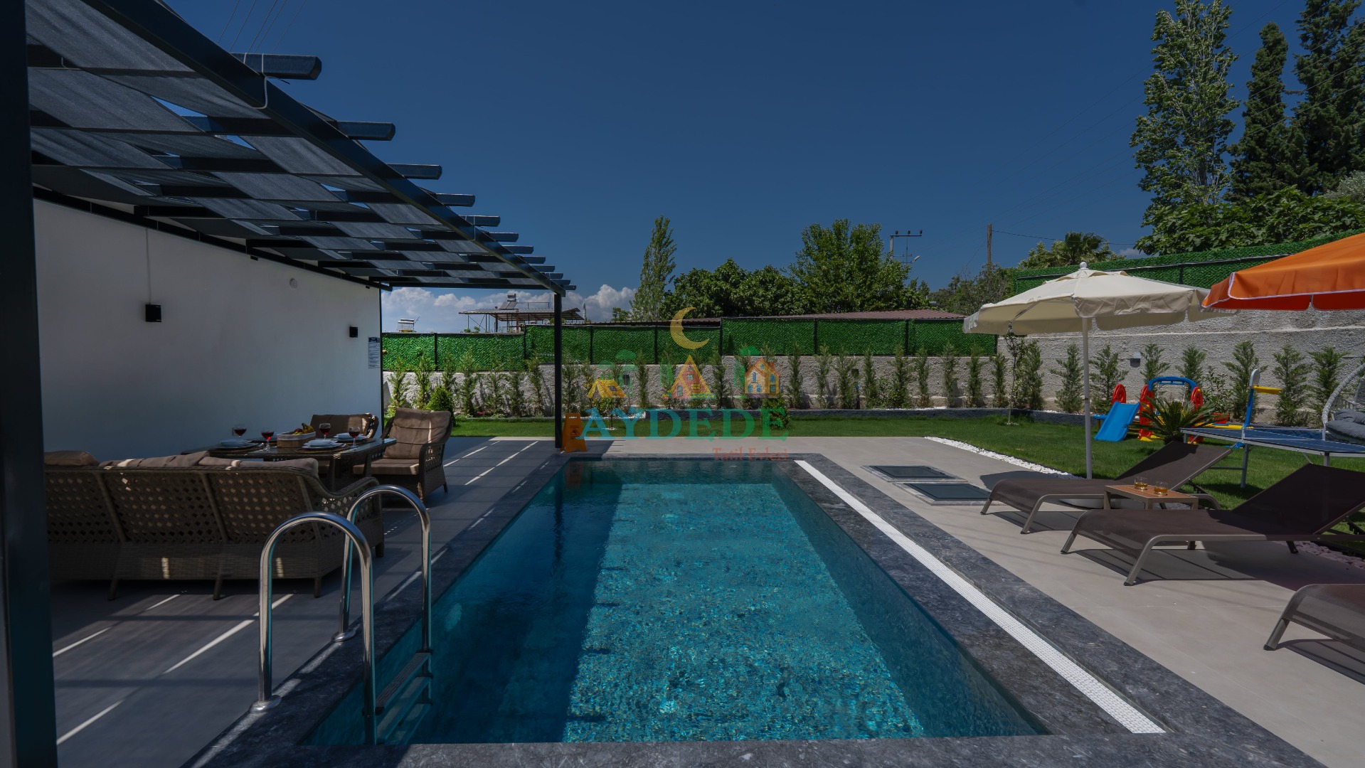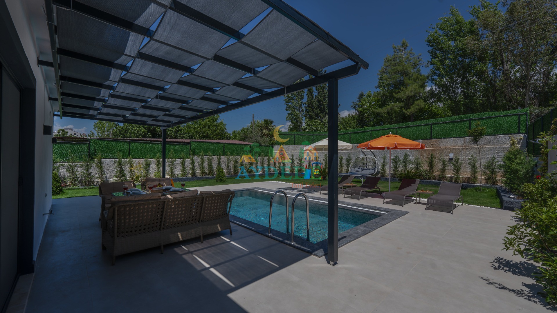 - Korunaklı havuz bahçe