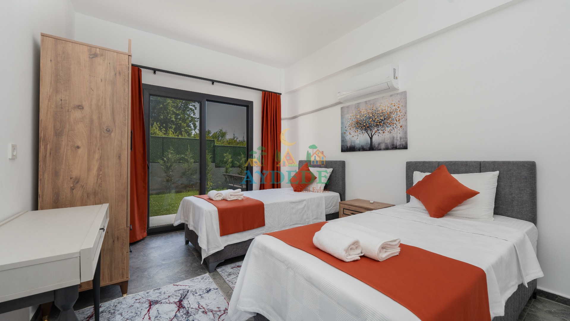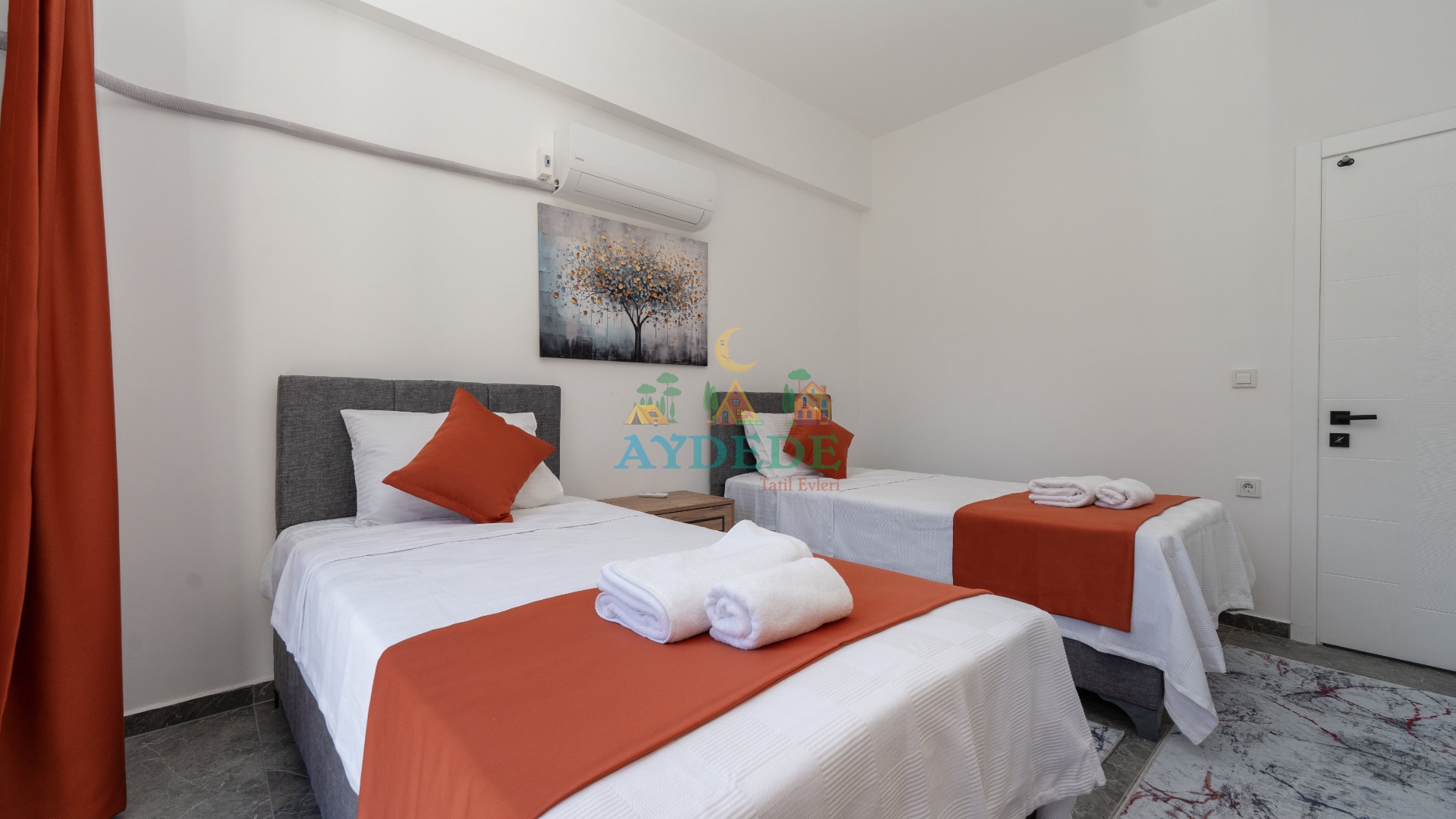 2 adet tek kişilik yatak, klima