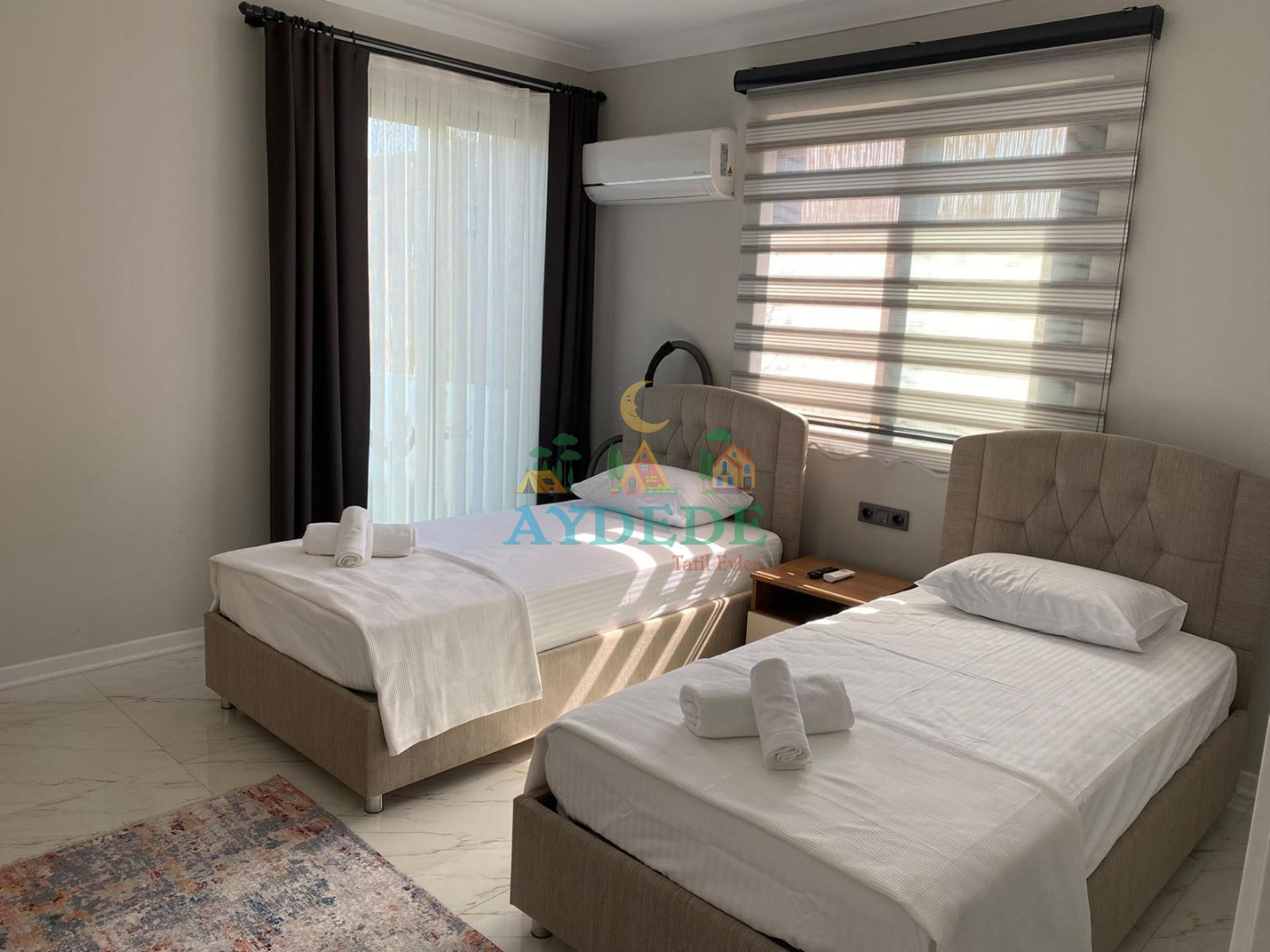 2 adet tek kişilik yatak, klima