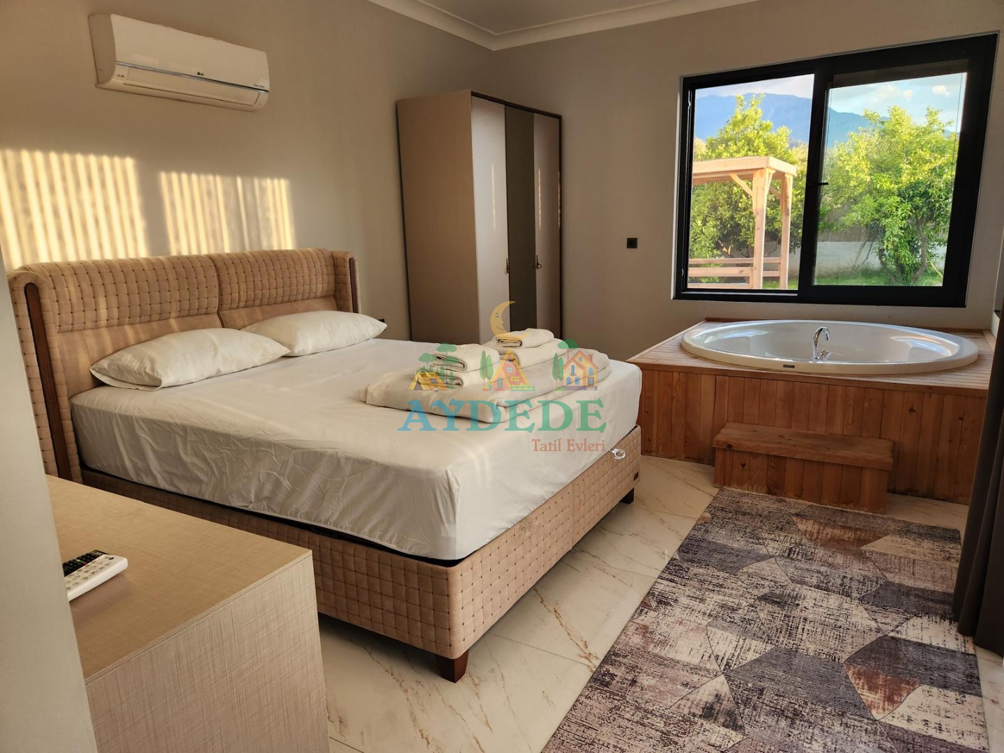 Çift kişilik yatak, jakuzi, ebeveyn banyosu, klima