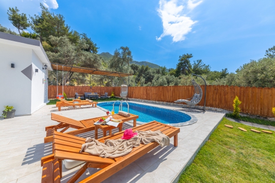 🏡 Villa Dinger | Seydikemer Saklıkent’te Tam Korunaklı, Jakuzili Özel Havuzlu 2+1 Balayı Villası
