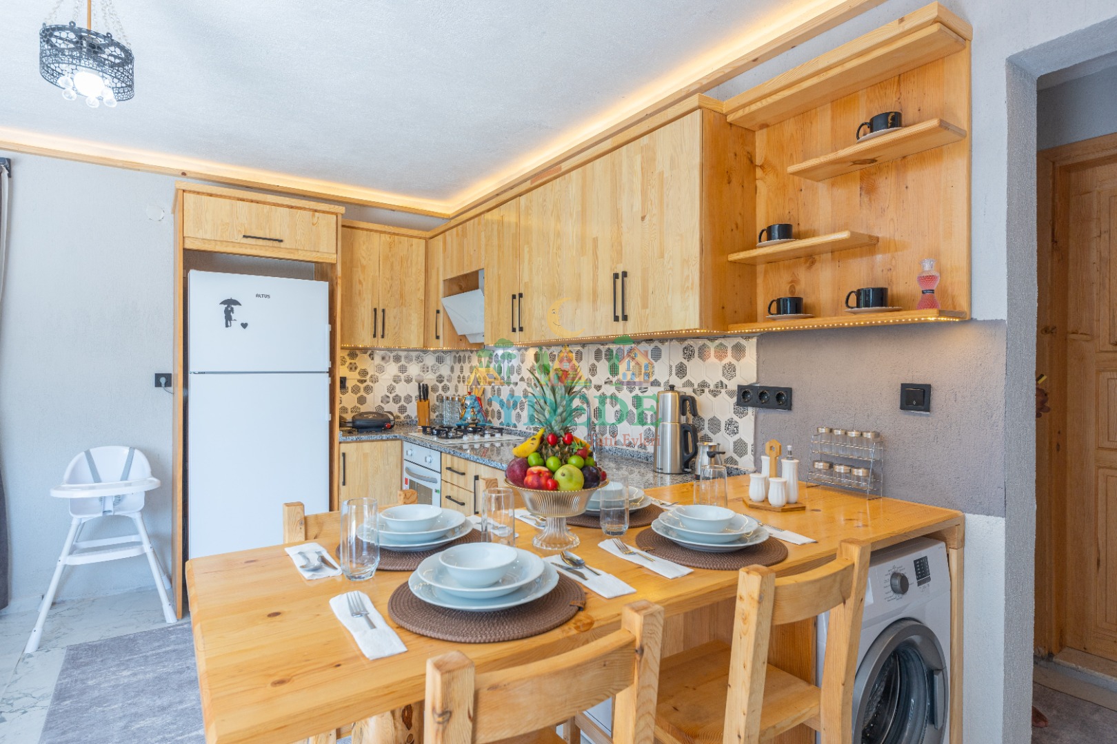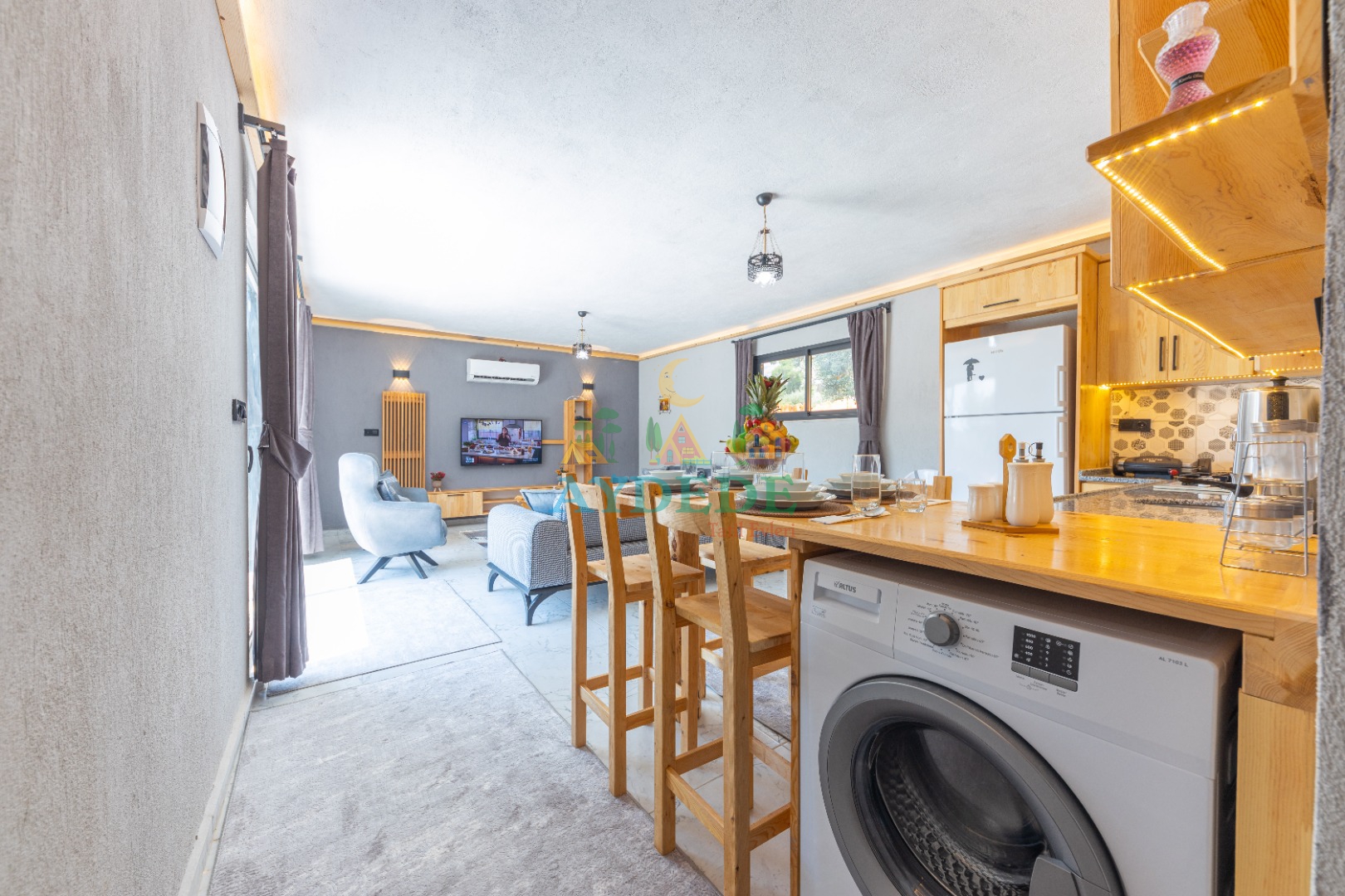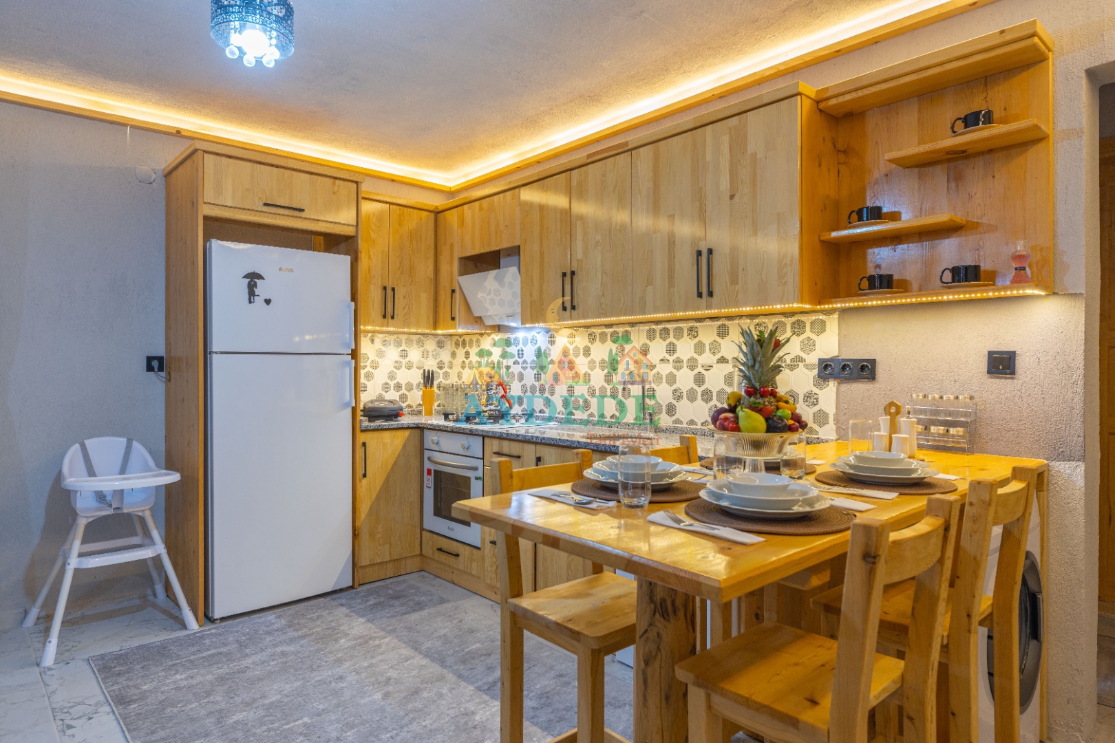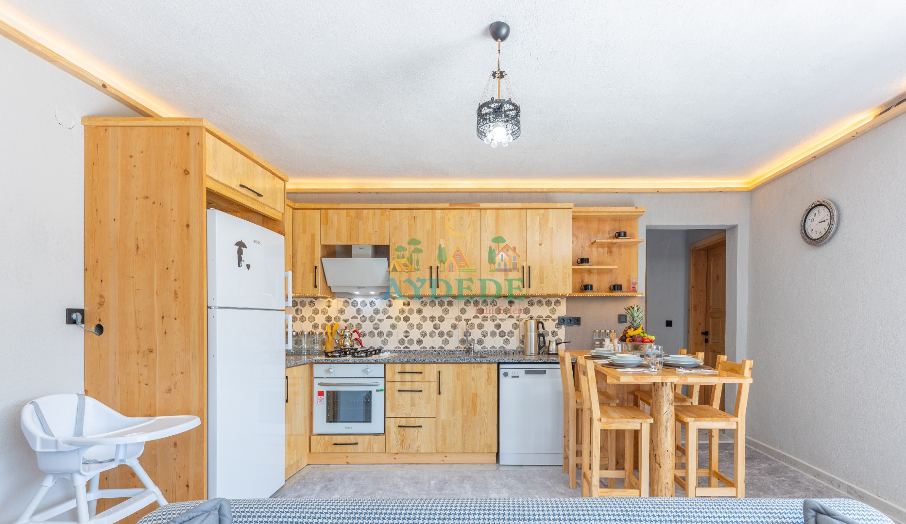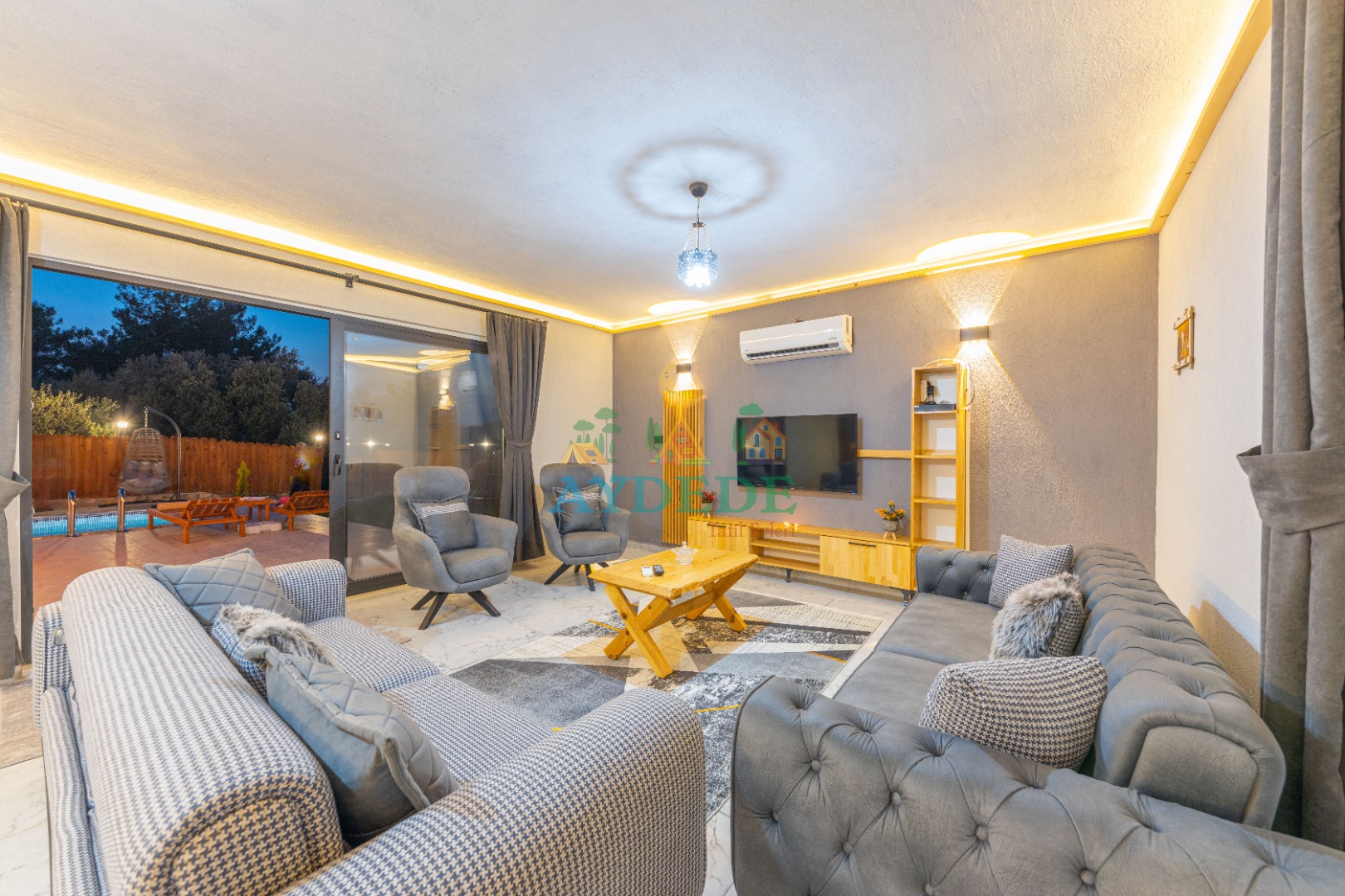 • Salonda klima, TV, oturma grubu, sehpa, mama sandalyesi