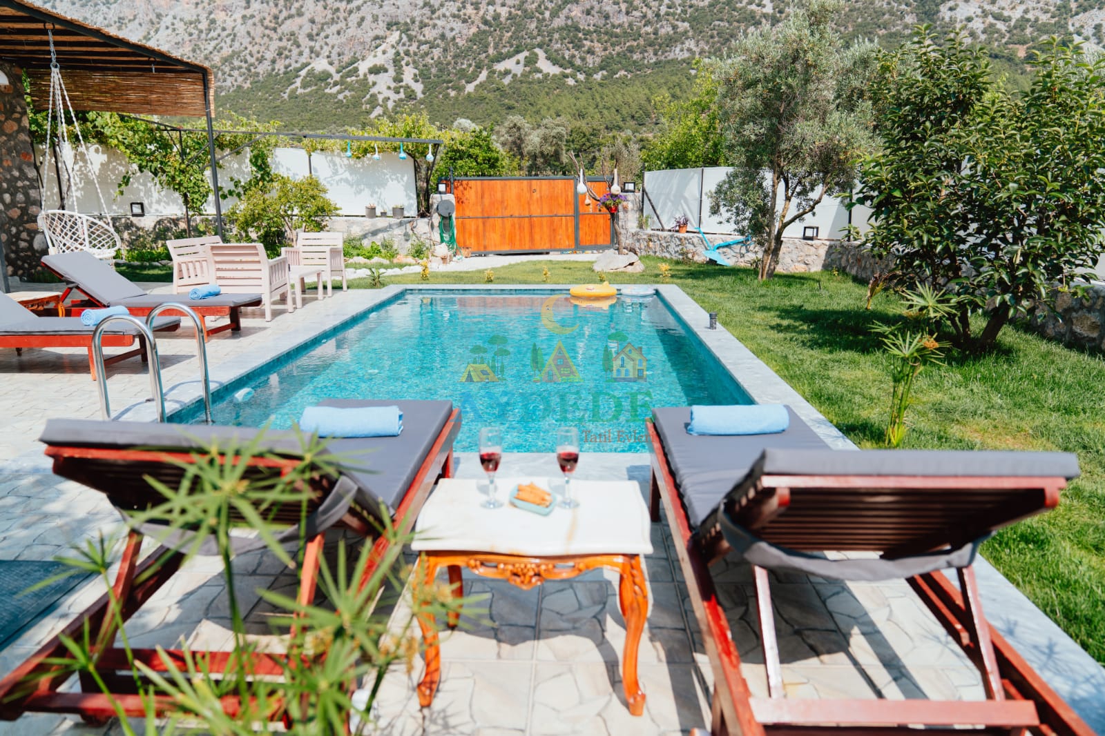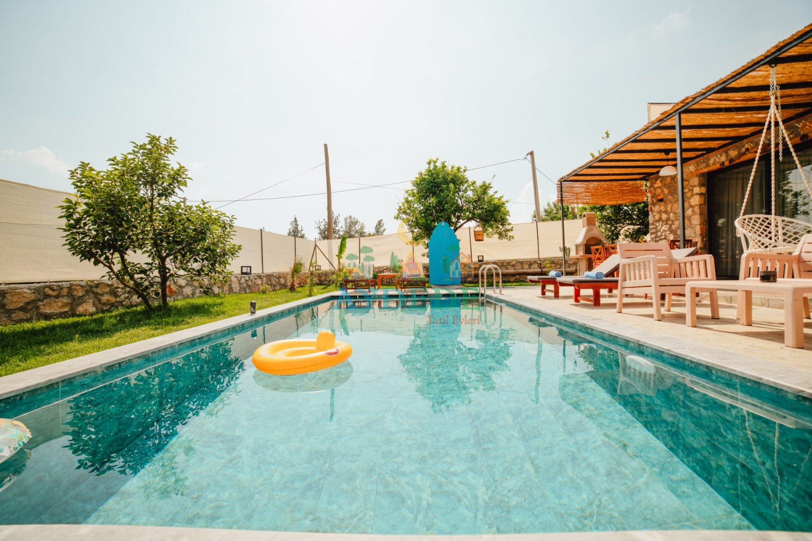 - Korunaklı havuz bahçe