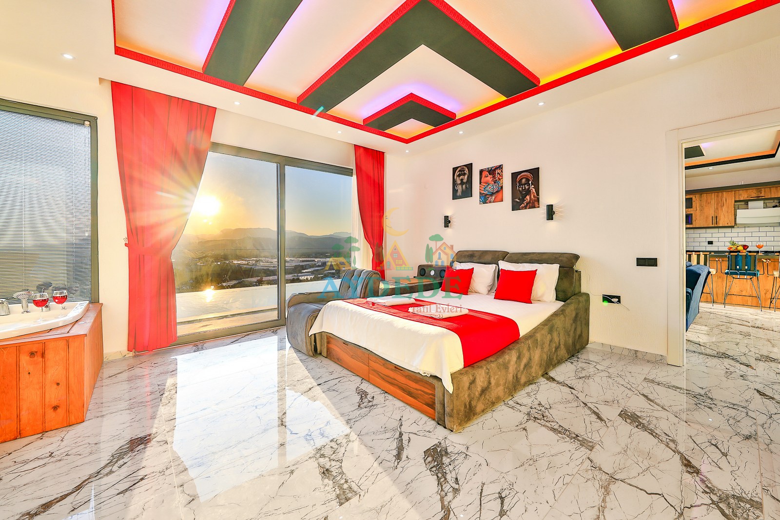 • Çift kişilik yatak odasında jakuzi bulunmaktadır