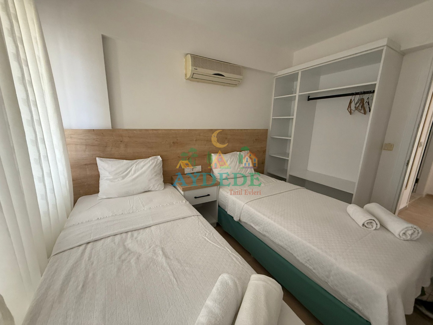 Çift kişilik yatak, klima. (2 adet tek kişilik yatak olarak ayrılablir.)