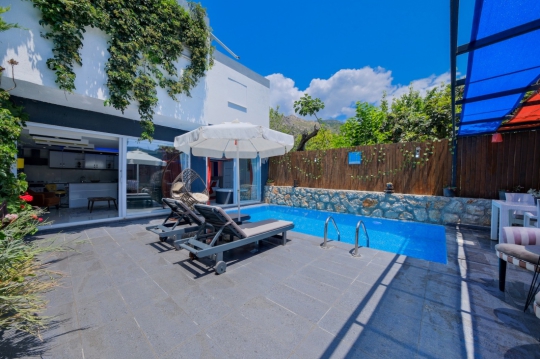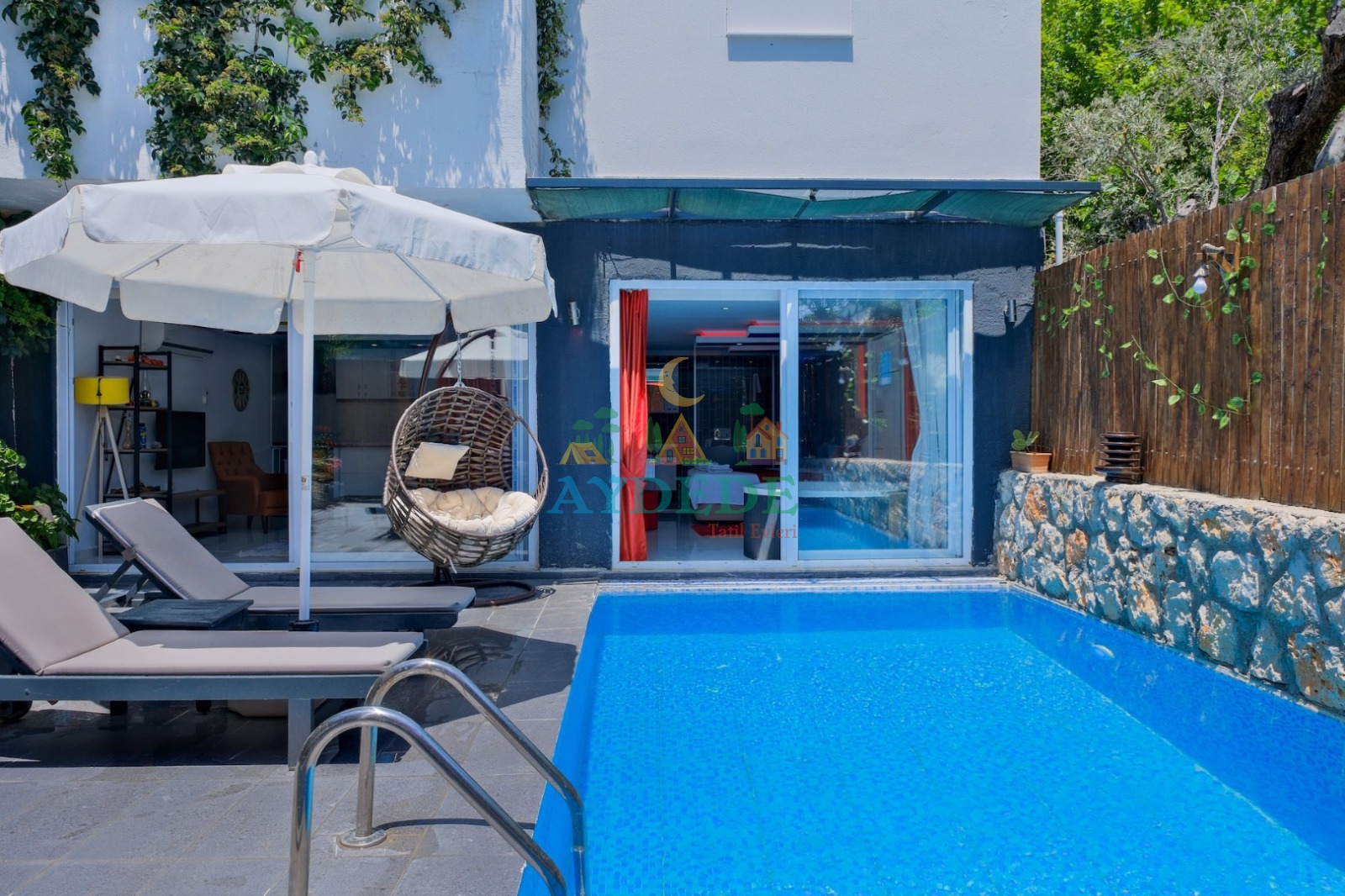 🏡 Villa Ilgaz | Kalkan Üzümlü’de Korunaklı Havuzlu, Jakuzili 1+1 Balayı Villası